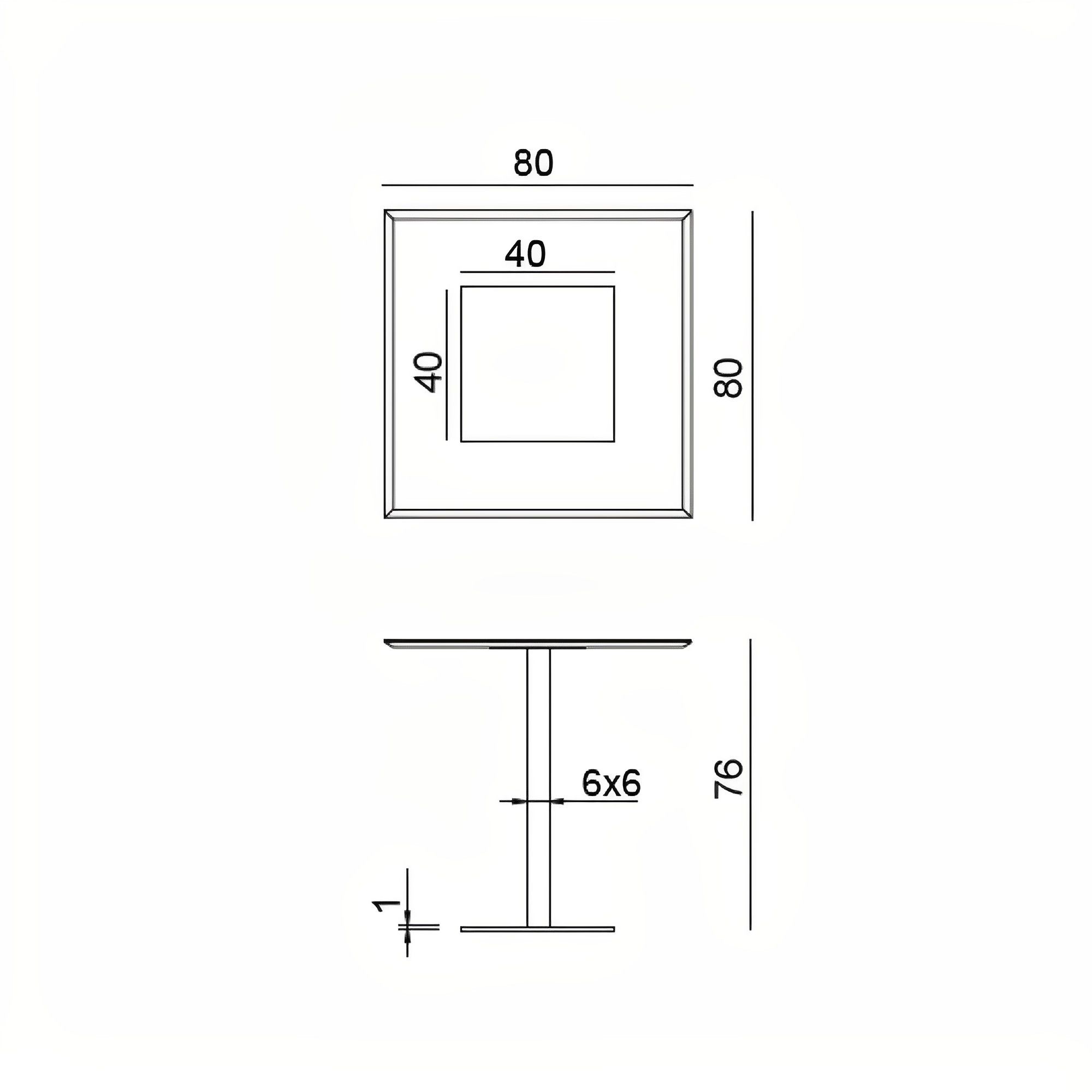 Dimensions: Top length 80 cm, Top width 80 cm, Height 76 cm