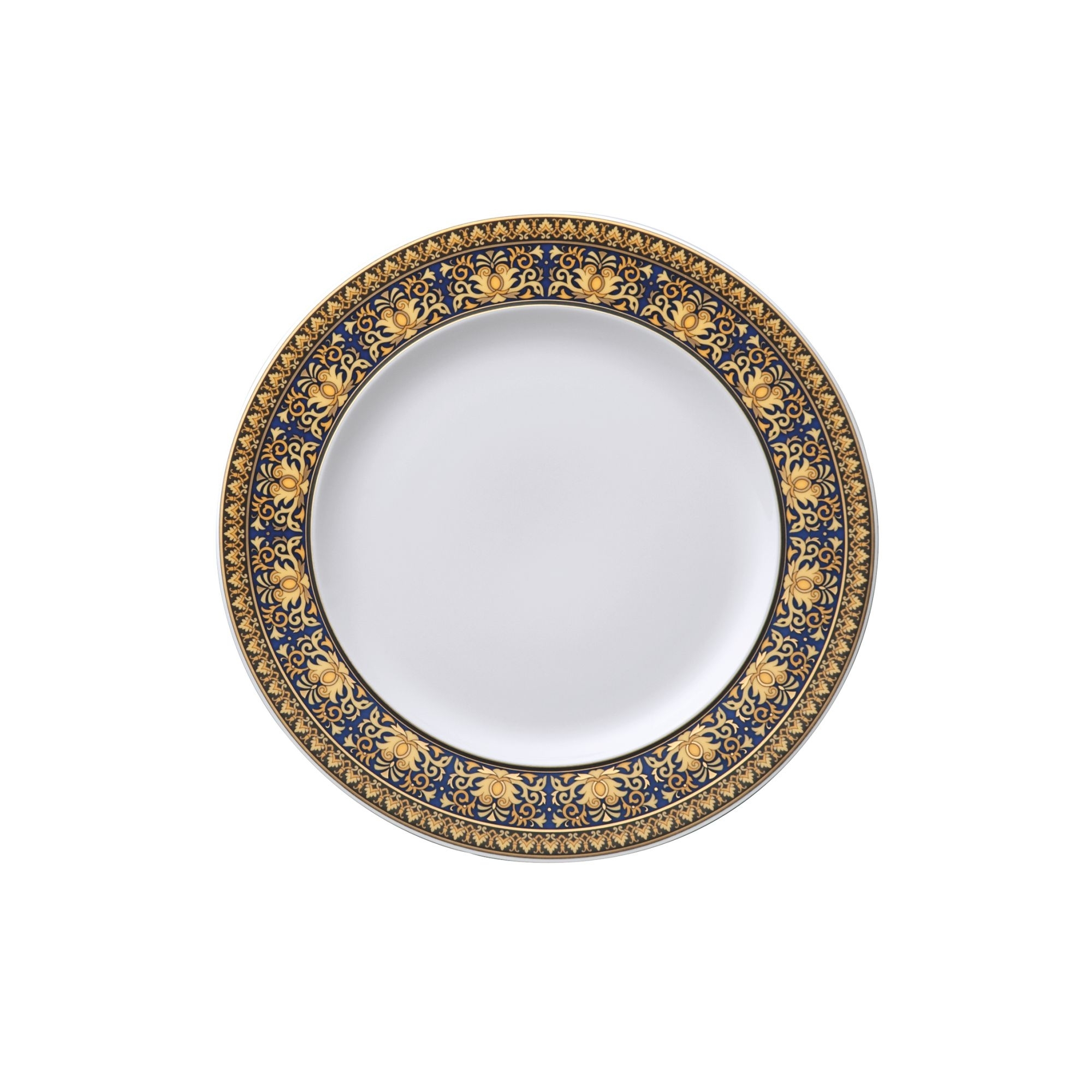 Porcelain Breakfast plate with a diameter of 22 cm, from the Medusa Blau collection. A unique tableware item that wil bring a touch of finesness to your table. A pure white takes over the central surface, while the edges feature Baroque-style decorations that complement a modern design. Made by Versace Rosenthal.