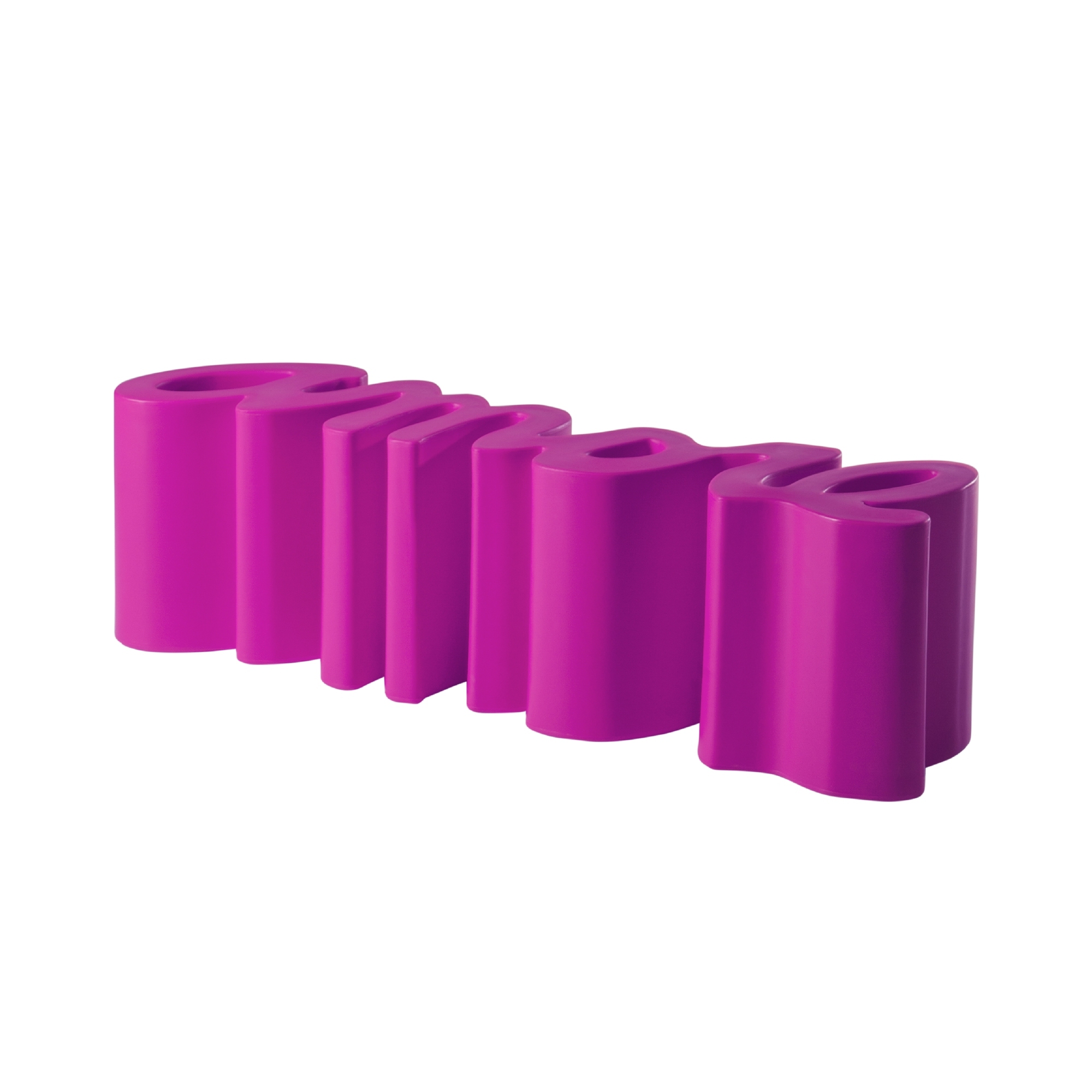 Amore bench made of polyethylene. Amore is an extravagant and eccentric seat that stands out for its full and exuberant shades, the unpredictable design and the versatility of the materials, fully expressing the creativity of its designer. Infuse a touch of playful light-heartedness to your rooms, choose the whimsy of pop style. Designed by Giò Colonna Romano for Slide.