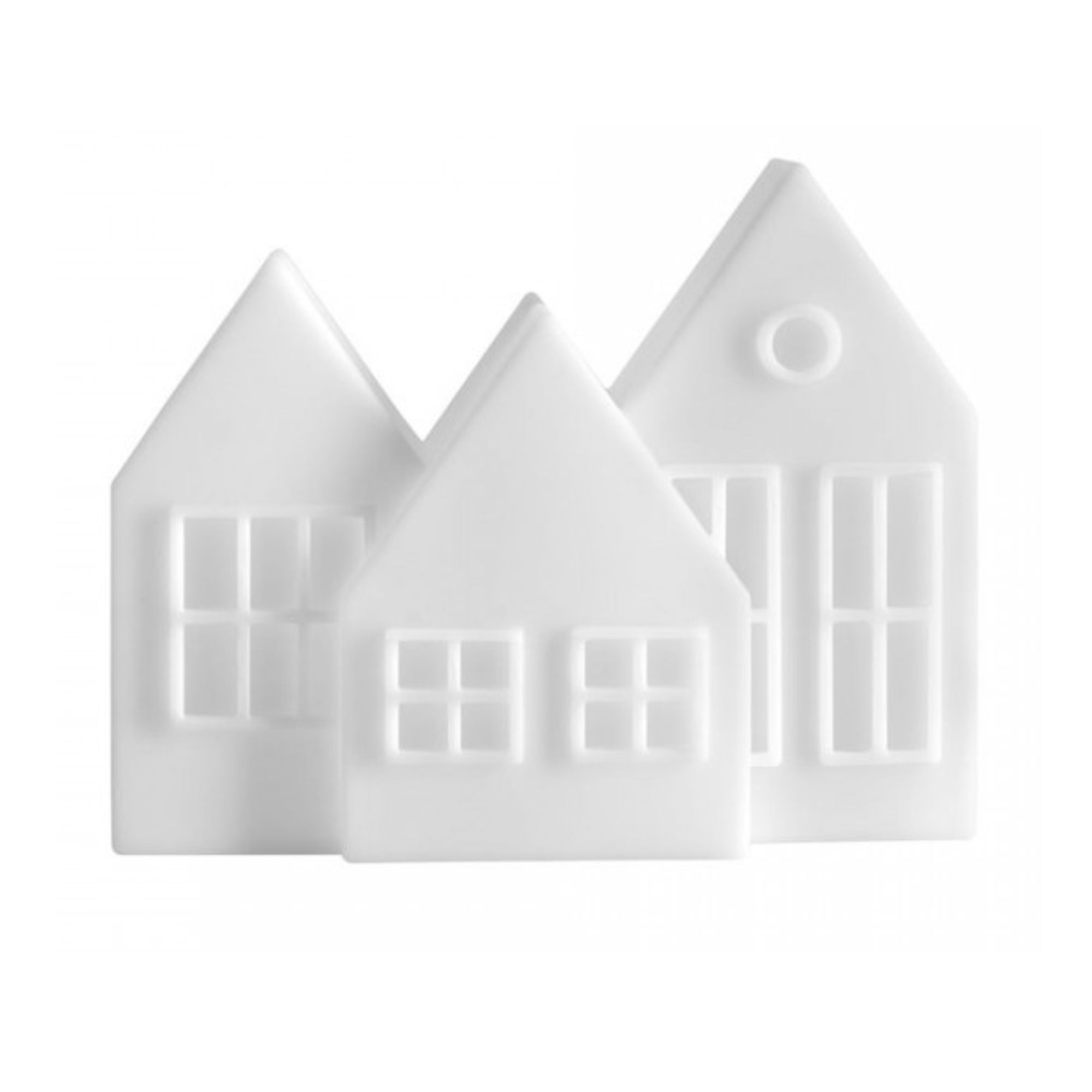 Kolme polyethylene table light. With minimal but decidedly sophisticated lines, Kolme is a graceful decorative element that draws inspiration from the evocative Nordic landscapes, whitened by the white flaking of snow. With Kolme you can create a warm and welcoming corner, dedicated to Christmas, to make young and old fall in love. Designed by Roberto Paoli for Slide.