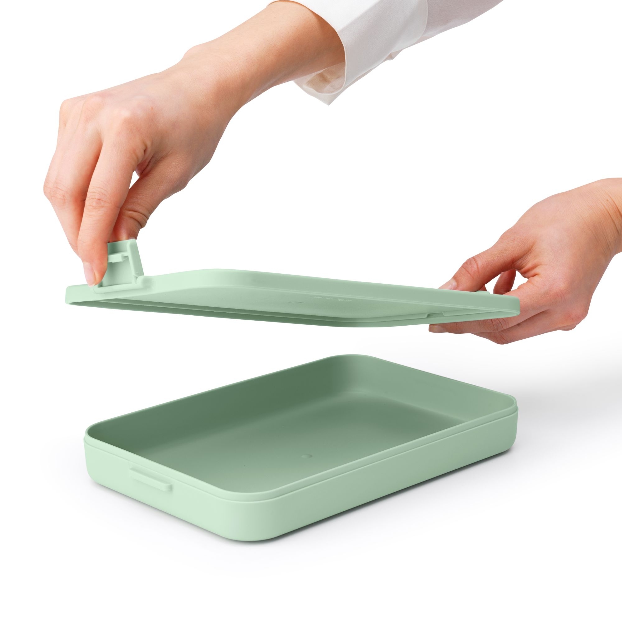 Lunch box from the Make & Take collection made of 100% recyclable thermoplastic resin. Available in three beautiful finishes, the Make & Take lunchbox is perfect for bringing lunch to the office or school. Equipped with lid with clip, it offers space for 4 sandwiches. The ideal accessory for those always on the run. Made by Brabantia.