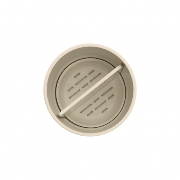 Toothbrush holder from the ReNew collection, made of thermoplastic resin. Available in 3 elegant finishes, the ReNew toothbrush holder is an essential accessory for the bathroom. Compact and sturdy, it separates toothbrushes and toothpaste tubes thanks to the two internal compartments, keeping them always clean and dry. Very easy to clean thanks to the removable partition. Made by Brabantia.