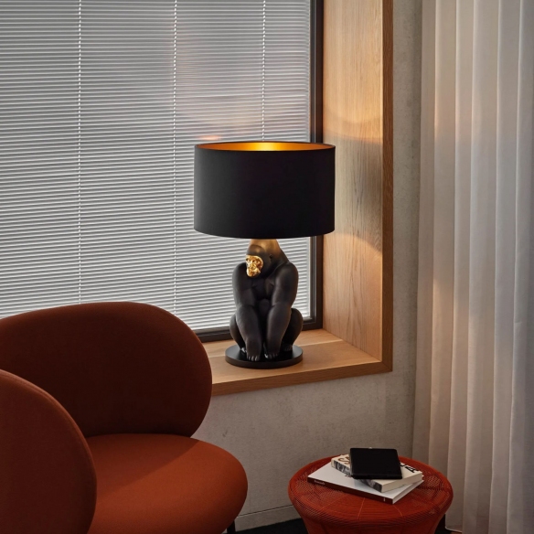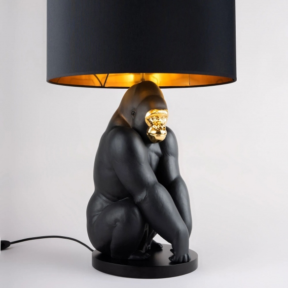 Gorilla Porcelain Table Lamp. Gorilla is a table lamp that embodies the essence of modernity. The body of the lamp houses a magnificent sculptural element, a work of art and craftsmanship, which exploits the expressive potential of porcelain. The shady and intense shades embellish an impactful, elegant and decidedly contemporary design. Gorilla is a beautiful decorative accessory capable of bringing charm and interest to the decor. A true piece of design for those who love the beauty of art. Made by Lladró