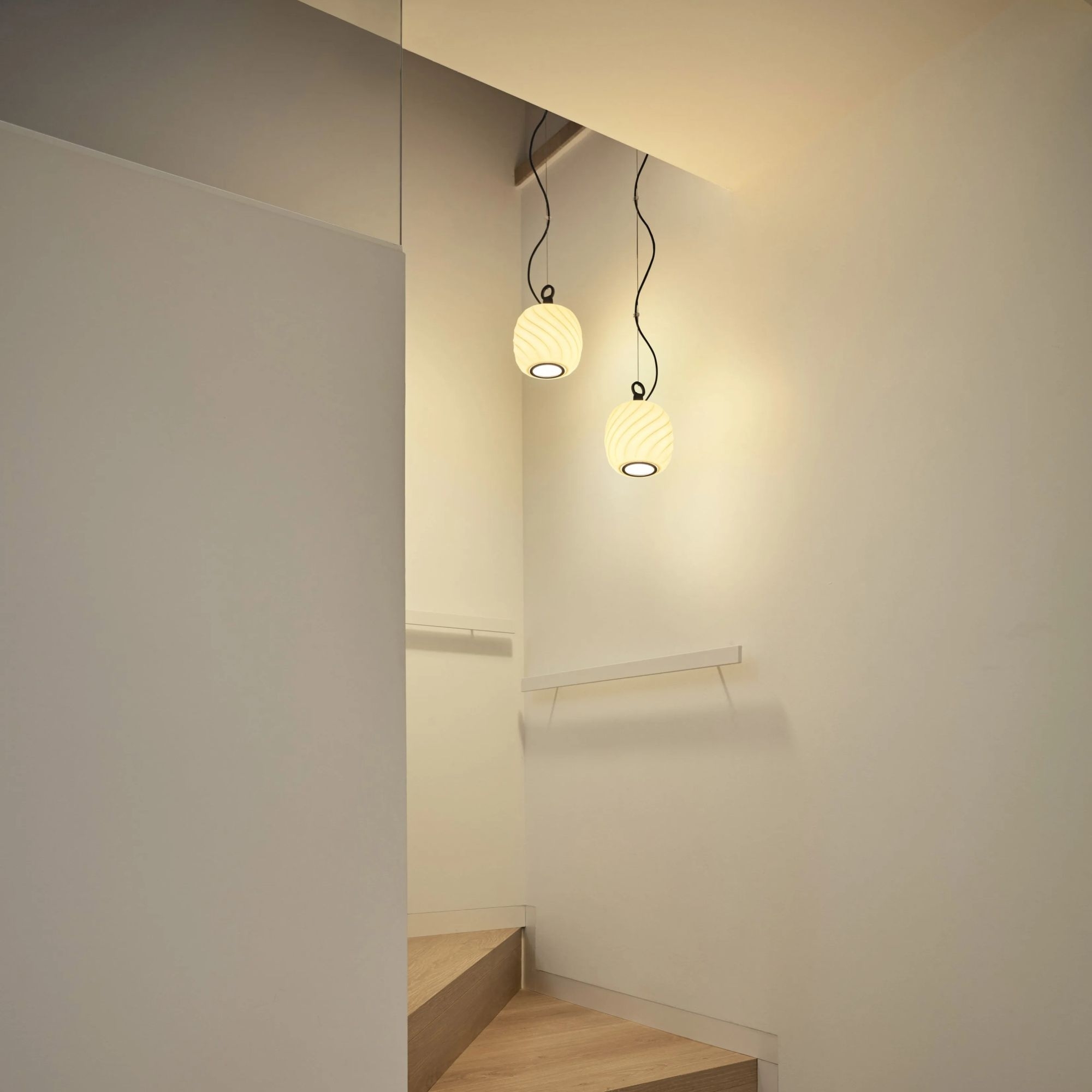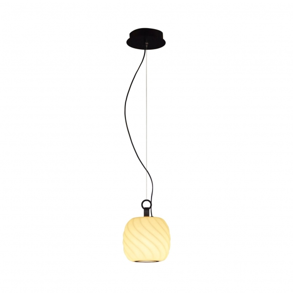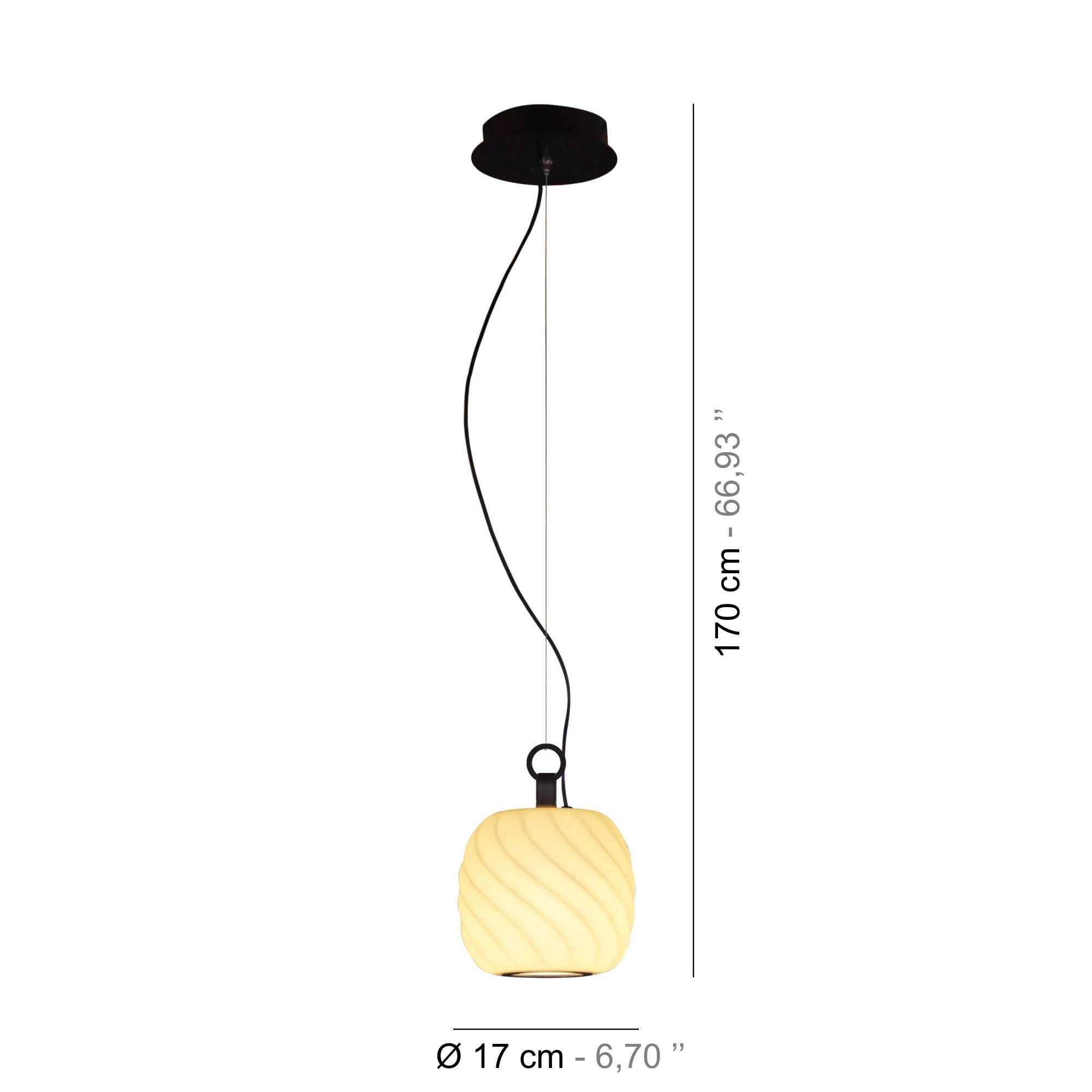 Ice Cream pendant lamp, made of matt white porcelain. Ice Cream pendant lamp is an elegant and modern lighting system that translates a sense of vivacity and aesthetic pleasure. The spherical lighting body of the lamp is embellished with sinuous and soft lines that produce a soft and magical light. The contrast between the warmth of the porcelain and the coolness of the iron creates a very special atmosphere. The Ice Cream pendant lamp is ideal to be used in any type of space and gives a bright and pleasant light. Made by Lladró