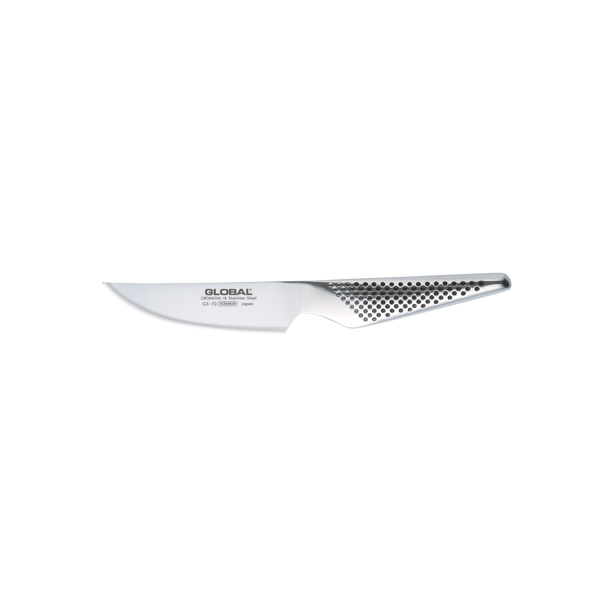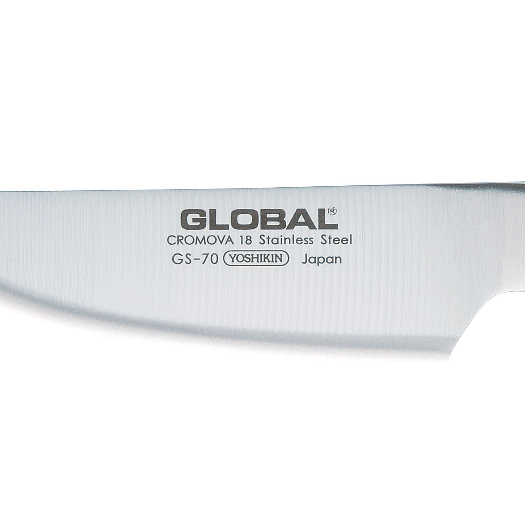 GS-70 carving knife with 10.5 cm blade. Model GS-70 is part of a unique line of knives designed and manufactured in Japan. It is distinguished by its sharp point which facilitates the piercing of the meat and allows it to be cut without breaking it. The knife is also handy and easy to use. Each piece in the collection meets absolutely excellent technical requirements and offers an extraordinary cutting performance. Made by Global