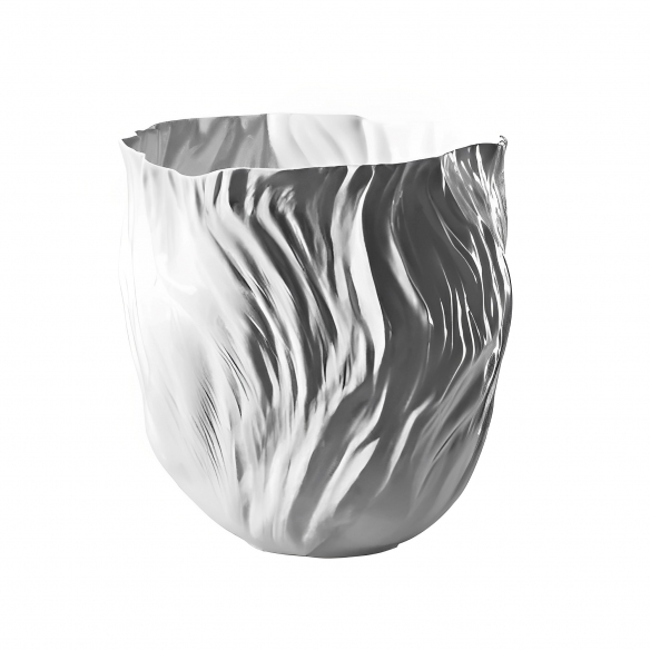 Adelaide I white porcelain vase, 26 cm high. Astonishingly ever changing and always new, this vase is a wonderful thing to use and to display. Curved and delicate lines flow seamlessly across its surface and appear to ripple when the light shines on them, resulting in a suggestive wavy effect that is beautiful to look at and unique to the touch. It has a soft white color and a simply fascinating texture capable of enhancing porcelain in all its beauty, fragility and purity. Designed by Xie Dong for Driade