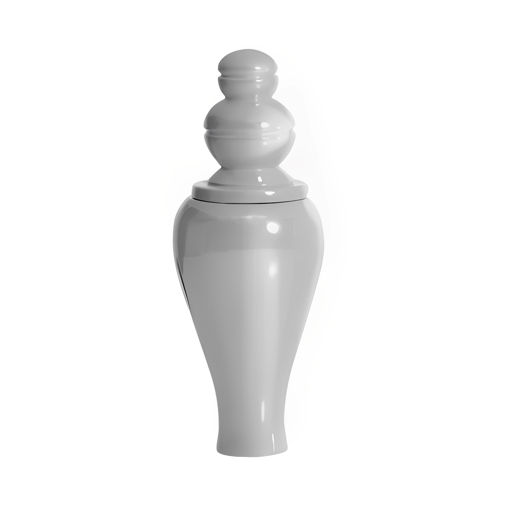 Amici V pearly ceramic vase, 39 cm high. It's delicate yet strong, it's bright but never overbearing, it's ethereal yet ever present, this gorgeous vase is a perfect marriage of art and function. Its sober, refined and balanced design enhances its classic and timeless shape, celebrating the beauty and purity of white ceramic. In addition, it has a special finish which gives its surface a peculiar pearly sheen. Amici vase is a stunning piece, capable of adding grace and beauty to your interior. Made by Driade