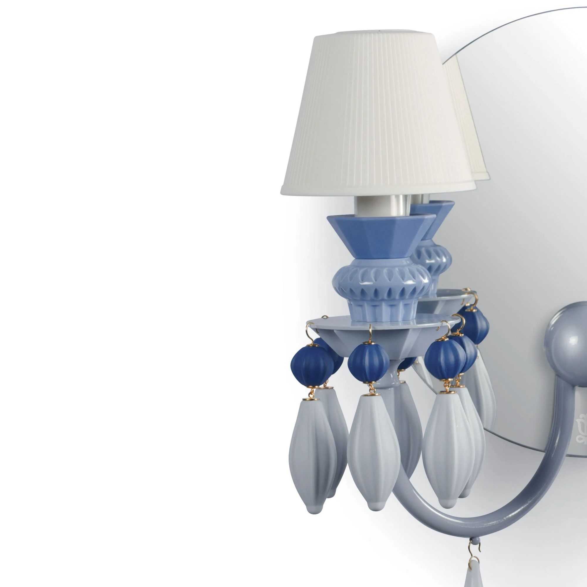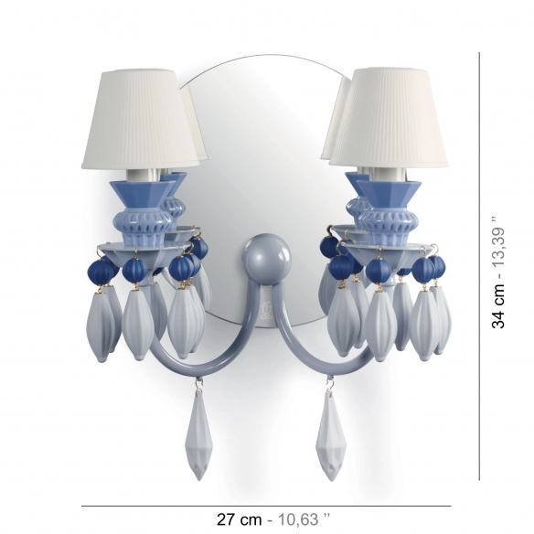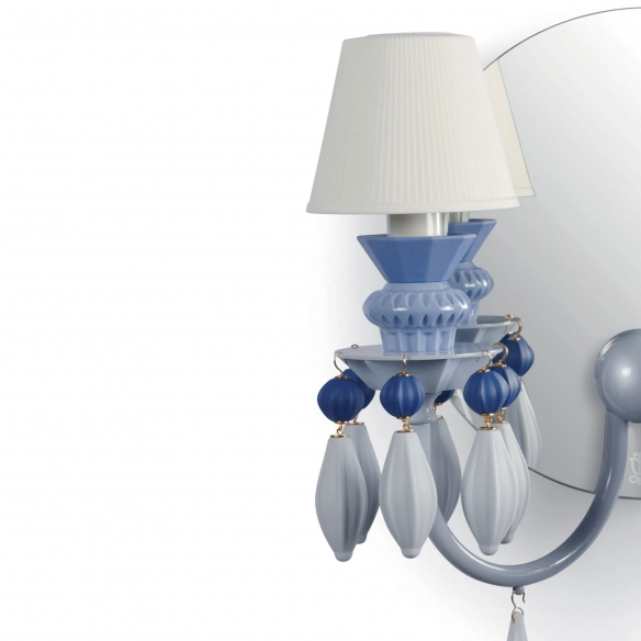 Belle de Nuit 2-lights porcelain wall lamp. Belle de Nuit is a piece of furniture with a timeless charm. Its traditional, refined and elegant design fits perfectly in both classic and contemporary contexts. A wonderful point of light that gives depth to the rooms, creating a warm and welcoming atmosphere: Belle de Nuit fascinates even when switched off, furnishing with elegance. The lamp is offered in green, black, blue, pink, gold, silver, multicolor and white. Made by Lladró