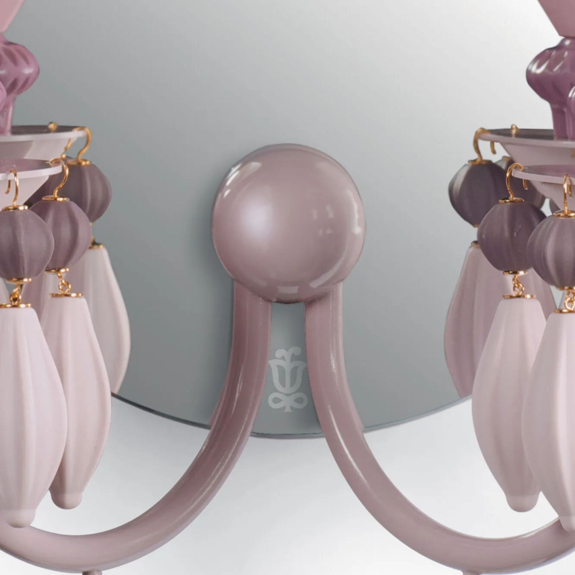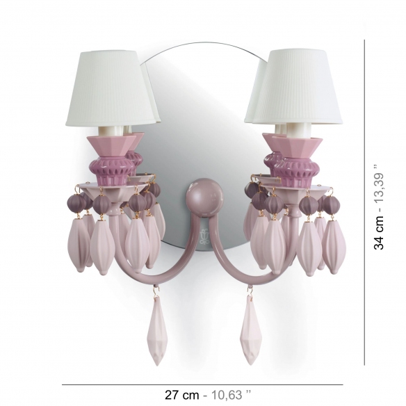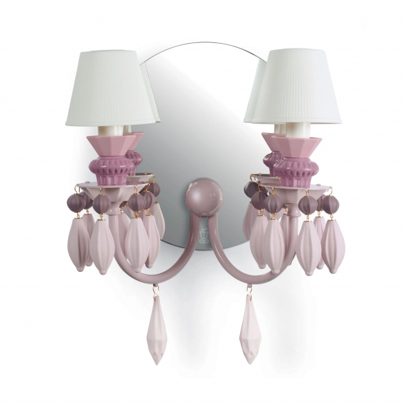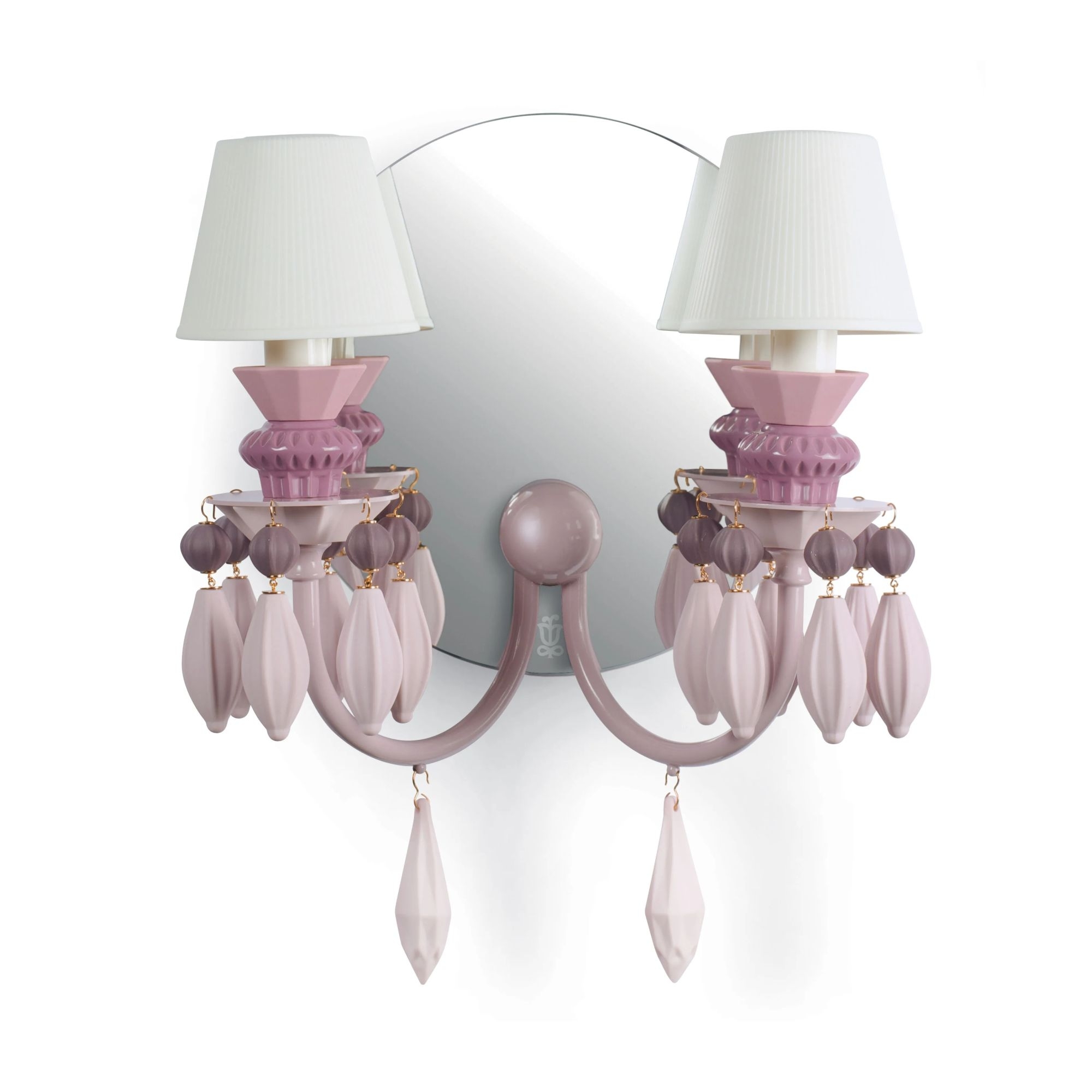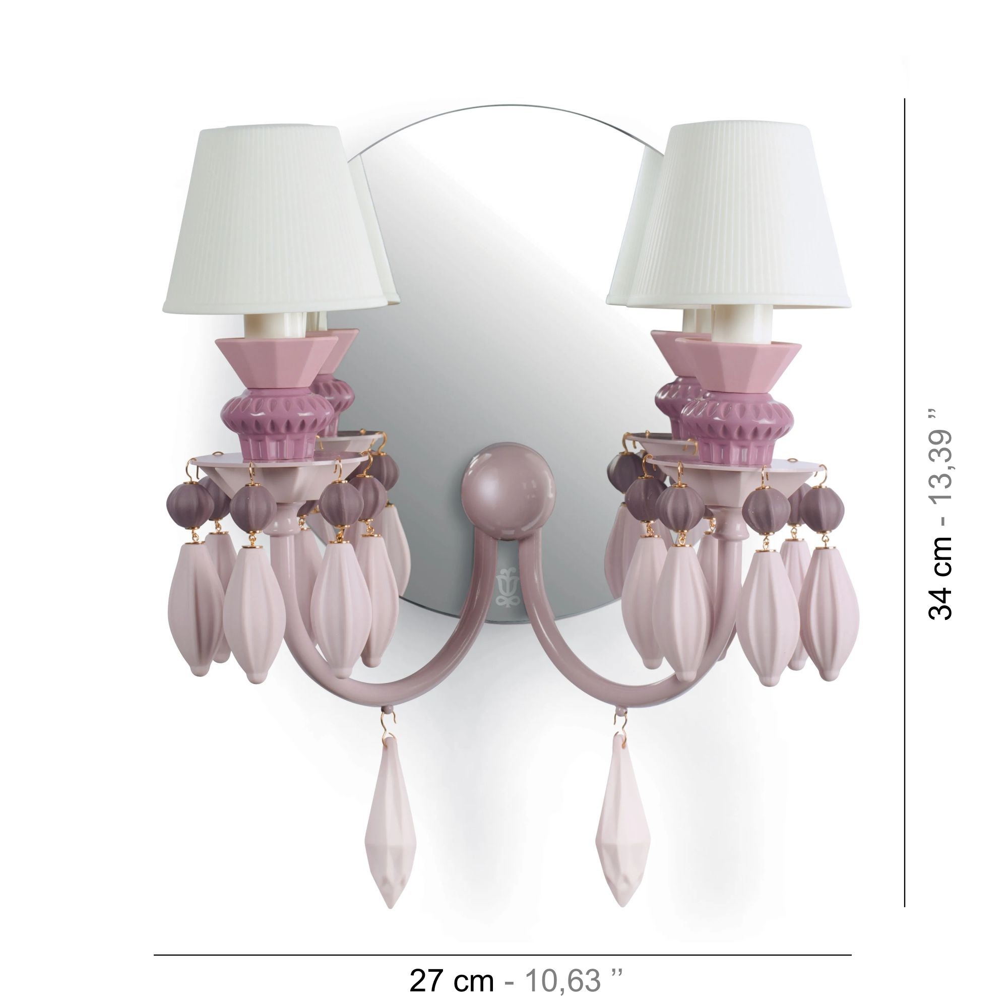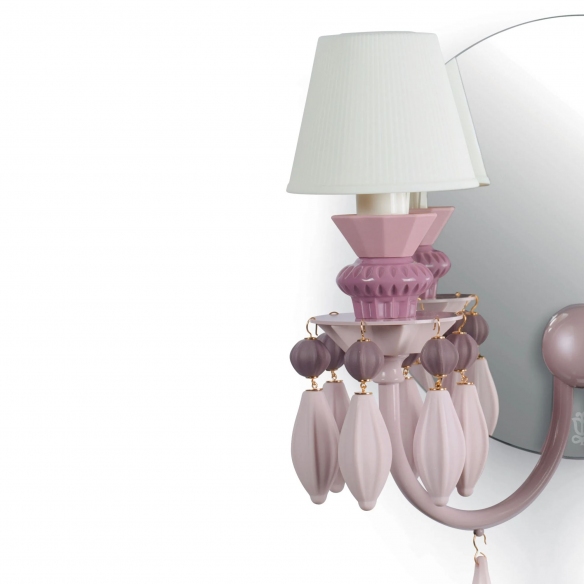 Belle de Nuit 2-lights porcelain wall lamp. Belle de Nuit is a piece of furniture with a timeless charm. Its traditional, refined and elegant design fits perfectly in both classic and contemporary contexts. A wonderful point of light that gives depth to the rooms, creating a warm and welcoming atmosphere: Belle de Nuit fascinates even when switched off, furnishing with elegance. The lamp is offered in green, black, blue, pink, gold, silver, multicolor and white. Made by Lladró