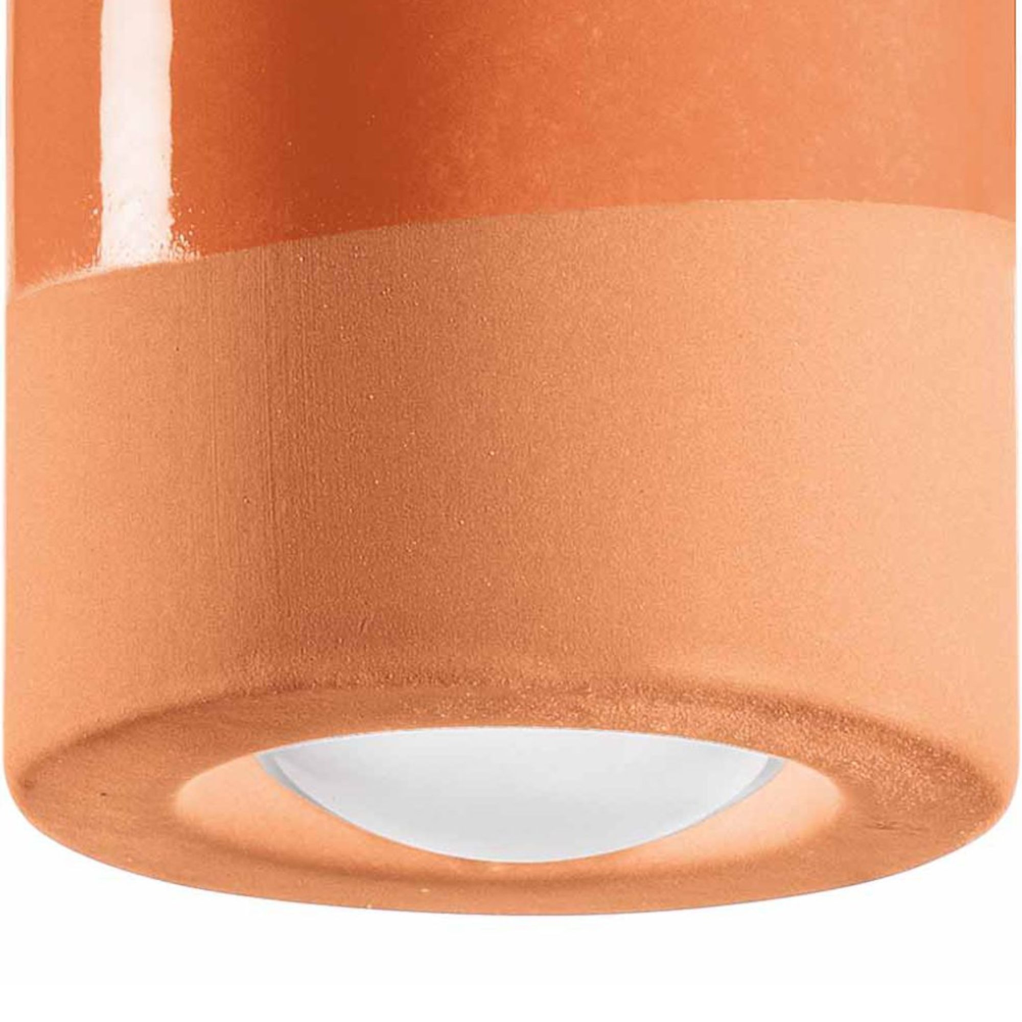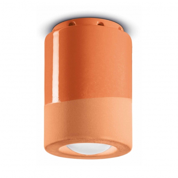 Pi C985 ceiling lamp, 12 cm high. A simple yet elegant design, this lamp stands out for its geometric shapes, swanky patterns and use of fine materials. It has a ceramic light fixture in a pleasantly vibrant hue and an elegant art deco style that will look great in any room. Made by Ferroluce