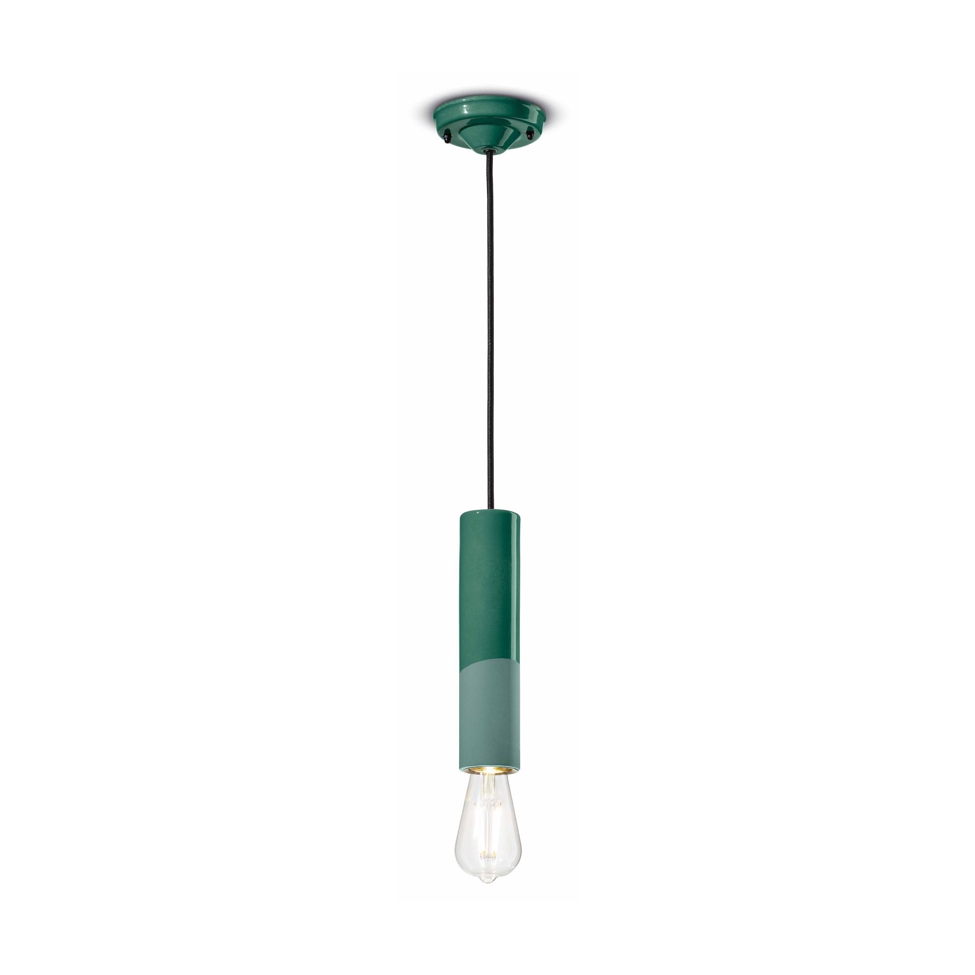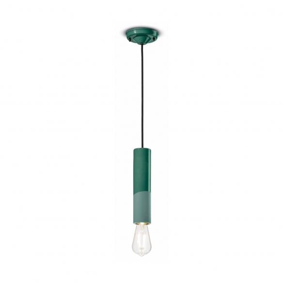 Pi C2500 suspension lamp, 25 cm high. A simple yet elegant design, this lamp stands out for its geometric shapes, swanky patterns and use of fine materials. It has a ceramic light fixture in a pleasantly vibrant hue and an elegant art deco style that will look great in any room. Made by Ferroluce