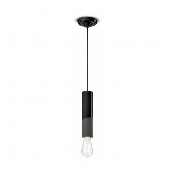 Pi C2500 suspension lamp, 25 cm high. A simple yet elegant design, this lamp stands out for its geometric shapes, swanky patterns and use of fine materials. It has a ceramic light fixture in a pleasantly vibrant hue and an elegant art deco style that will look great in any room. Made by Ferroluce