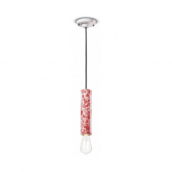 Pi C2500 suspension lamp, 25 cm high. A simple yet elegant design, this lamp stands out for its geometric shapes, swanky patterns and use of fine materials. It has a ceramic light fixture in a pleasantly vibrant hue and an elegant art deco style that will look great in any room. Made by Ferroluce