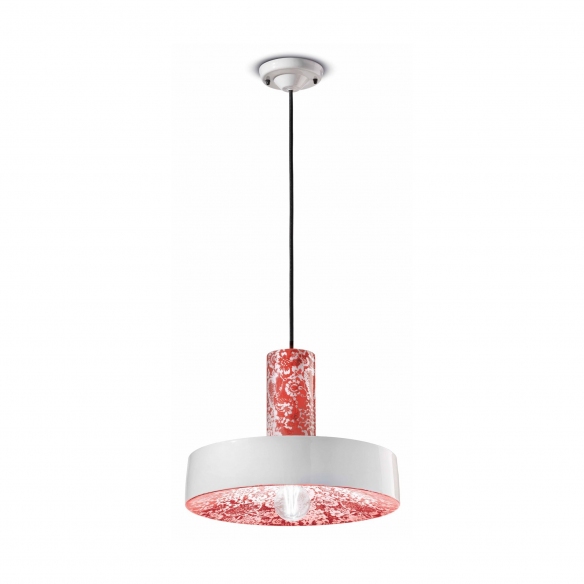 Pi C2502 suspension lamp, 26 cm high. A simple yet elegant design, this lamp stands out for its geometric shapes, swanky patterns and use of fine materials. It has a ceramic light fixture in a pleasantly vibrant hue and an elegant art deco style that will look great in any room. Made by Ferroluce