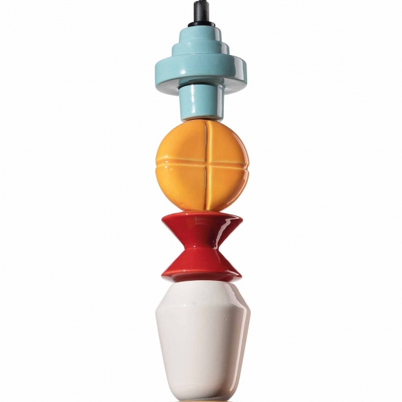 Lariat C2530 suspension lamp Ø 28 cm. This eye-catching pendant light casts a warm, inviting glow into any space. It is made of ceramic and has a geometric pattern, a repeated design of shapes and lines, which embellishes the lighting body; and its long and slender shape makes it the perfect solution for lighting up large spaces. Made by Ferroluce
