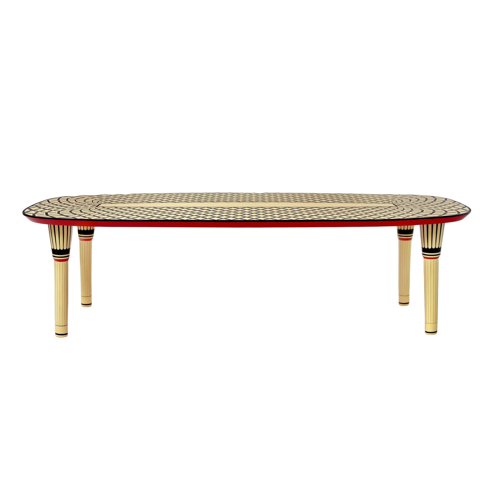 Aelita table, 281 cm long. A beautiful table, striking and luxurious at the same time, Aelita is an elegant and modern way to style your interior. It is built with a classic rectangular shape, and features a timeless gloss black and vanilla finish, resin inlay, and lovely legs. The resin material gives the table a more contemporary look while retaining the traditional shapes. Designed by Matteo Cibic