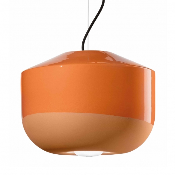 Bellota C2541 suspension lamp Ø 35 cm. The lamp is made of ceramic material clad in bright colours. It has a beautiful half-sphere shape and a refined glossy finish on top. A small recess on the bottom houses the bulb instead. When a space is lit up with Bellota, it becomes more cheerful and attractive! Made by Ferroluce