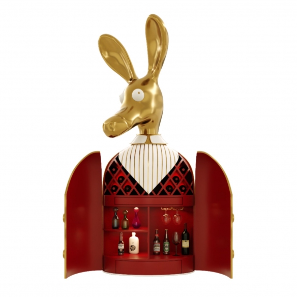Ciuco cabinet 216 cm high. Signor Ciuco is a distinguished gentleman. He always dresses in the latest fashions and takes great care of his looks. He is a worldly man and a great source of charm to those around him. He's also a gold cabinet with a happy face. It is made of high quality materials. He is incredibly beautiful, amazes us and takes our breath away! Designed by Matteo Cibic