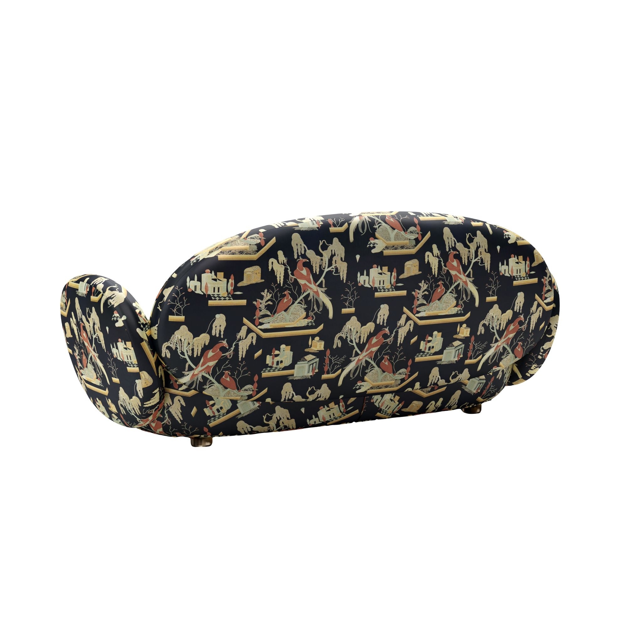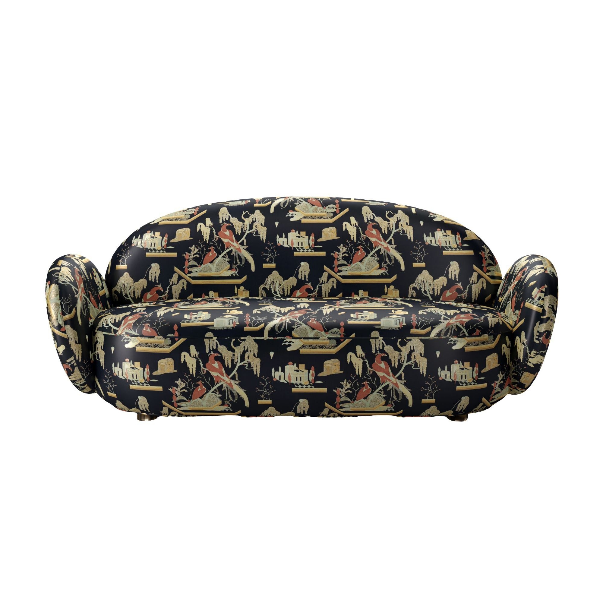 Dolce Far Niente sofa 220 cm long. Treat yourself to the luxury of lounging around and enjoy a moment of pure pleasure in this soft, welcoming and comfortable sofa. It has a jacquard fabric upholstery and boasts an elegant design with wooden feet. The combination of these elements creates an overwhelmingly beautiful corner for family or friends to gather. Designed by Matteo Cibic