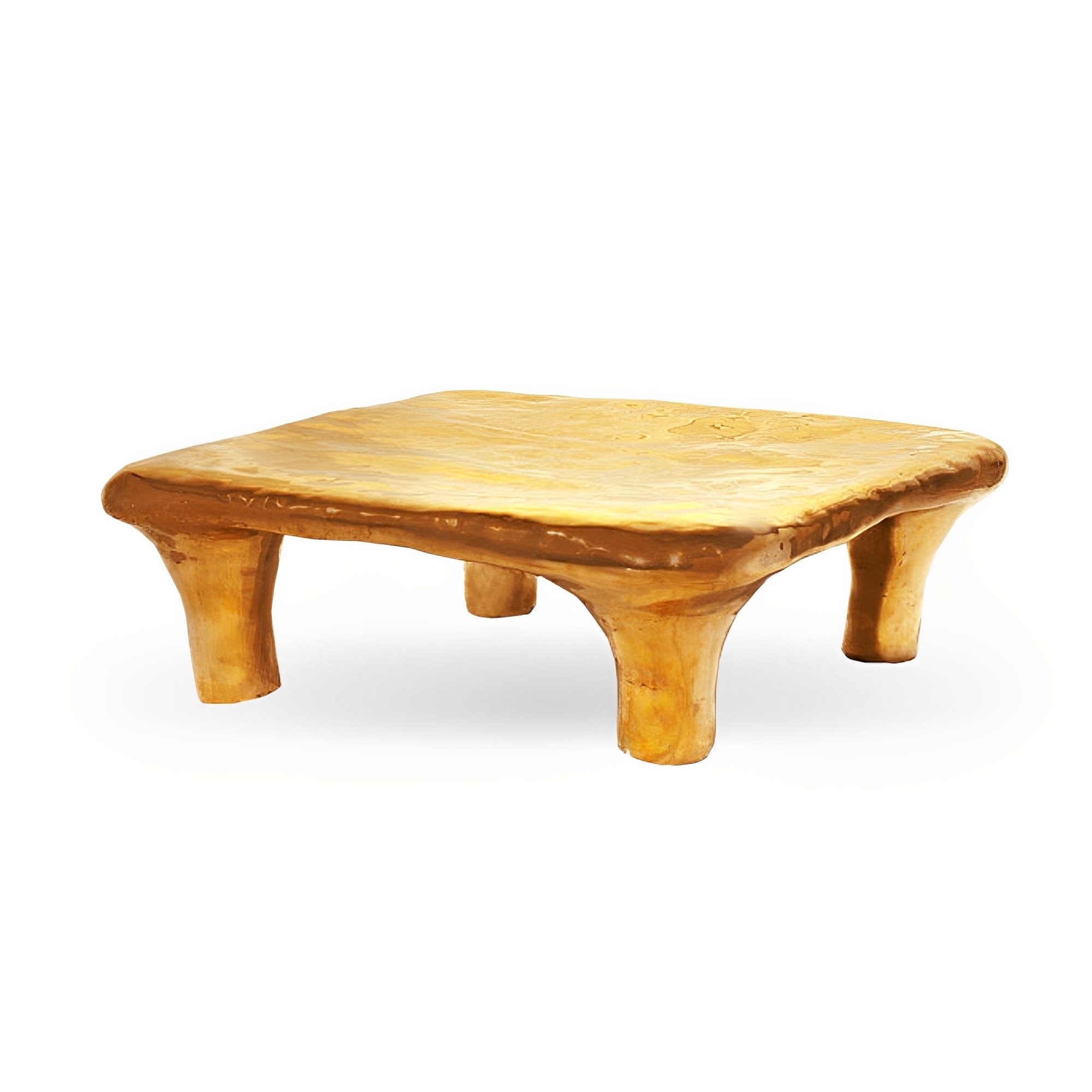 Illusion coffee table 35.5 cm high. Showy and beyond the ordinary, this coffee table is something magnificent, eye-catching and overwhelmingly beautiful. It is an emphasis on luxurious beauty and extravagance, excesses and lack of restraint with a warm gold color and an uneven surface, not easily defined, a blob-like or cloudy in appearance. Fool's Gold is a hymn to modernity. Made by Scarlet Splendour