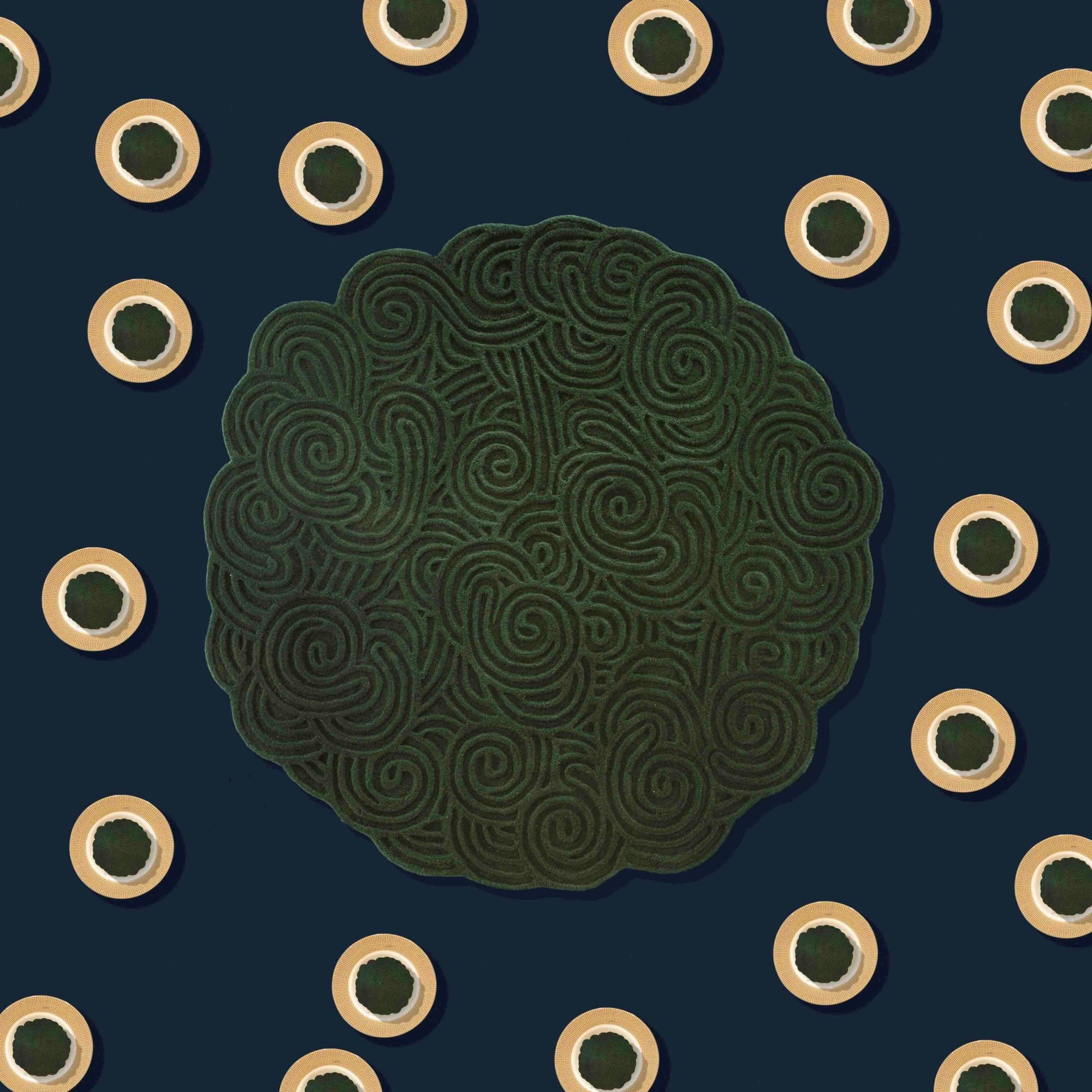 Karesansui rug 200 cm. A timeless circular design, Karesansui rug is an heirloom quality rug carefully created by artisans with New Zealand wool. Its intricate concentric designs create an outstanding graphic effect in a gorgeous accessory that will add warmth and texture to interiors. Karesansui is available in berry, bloom, gravel, moss, ocean, river, rock and sand versions. Designed by Matteo Cibic