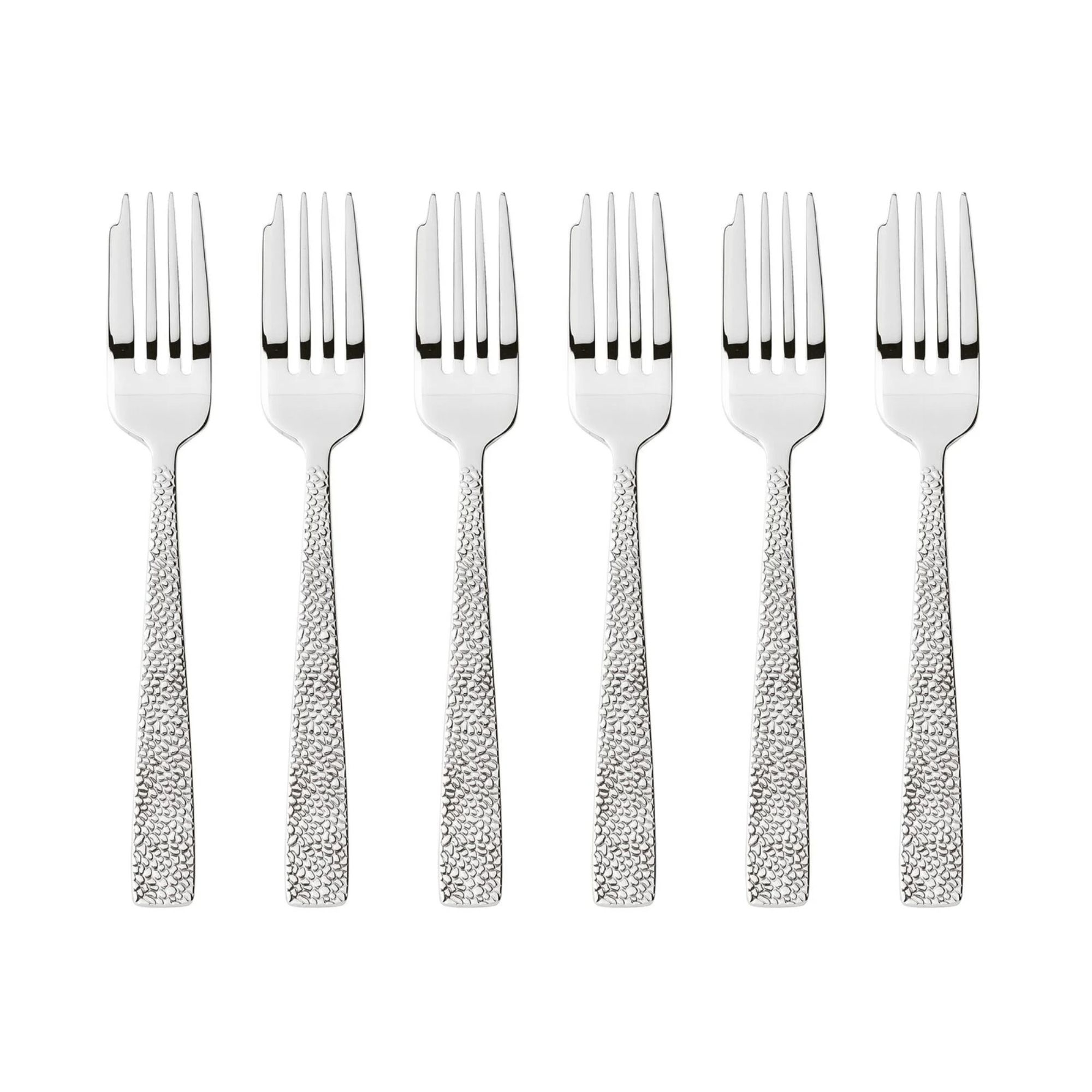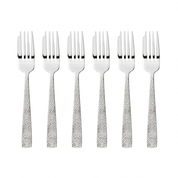 6-piece 18/10 stainless steel dessert fork set, from Siena collection. Each piece features a gorgeous detailing on its handle, making it perfect for sophisticated contexts. Delicate, stylish and performing, Siena set will give a unique character to your mise en place. Made by Sambonet.
