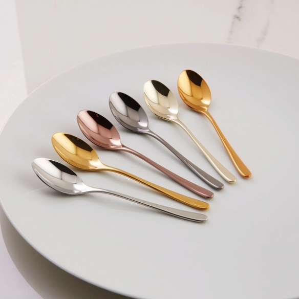 6-piece 18/10 stainless steel mocha spoon set, from Taste collection. Available in our beautiful colors, these mocha spoons features an essential and minimalist design, with a delicate drop shape. Perfect for both everyday use and for special occasions, these beautiful accessories will bring an exclusive character and a strong presence to the table. Made by Sambonet.