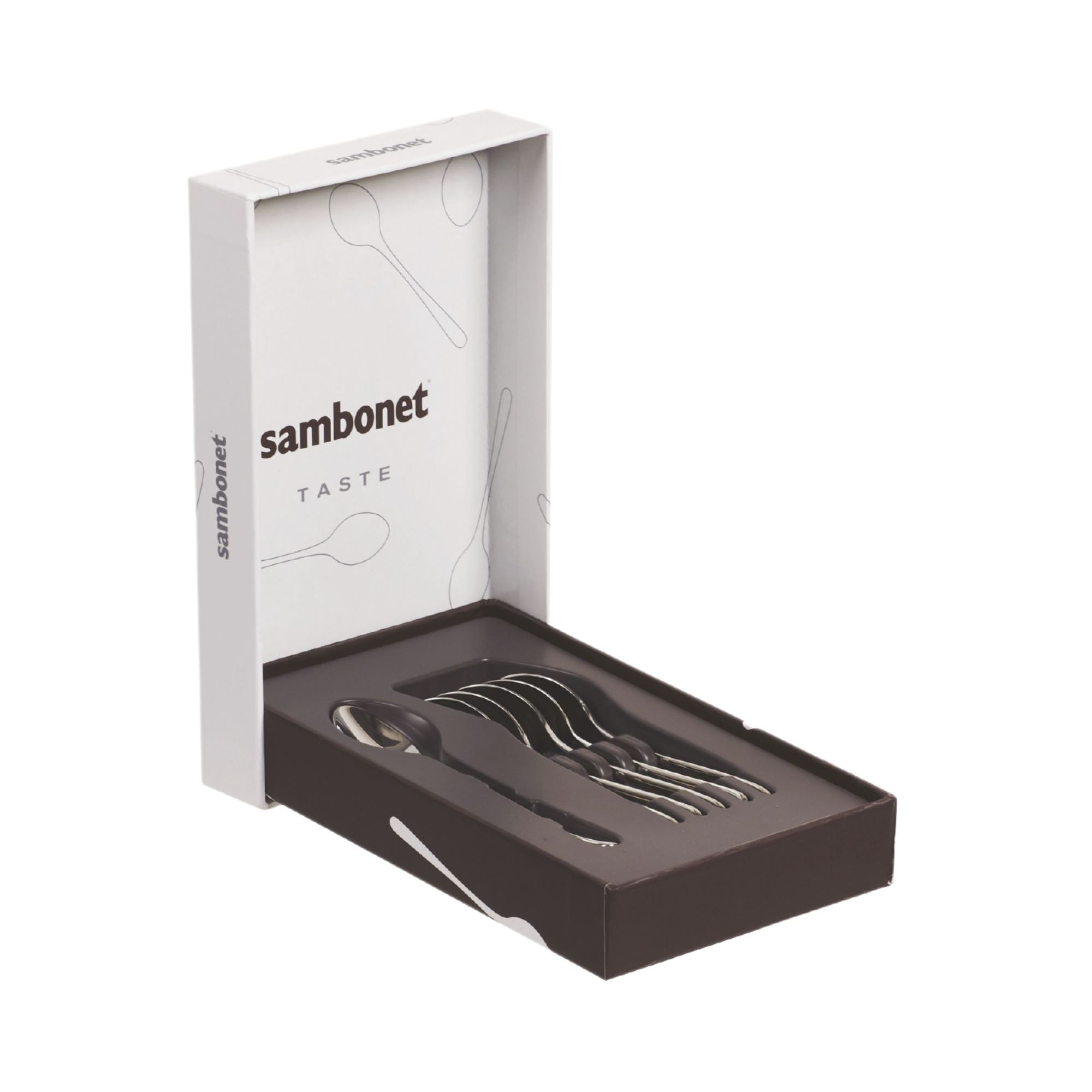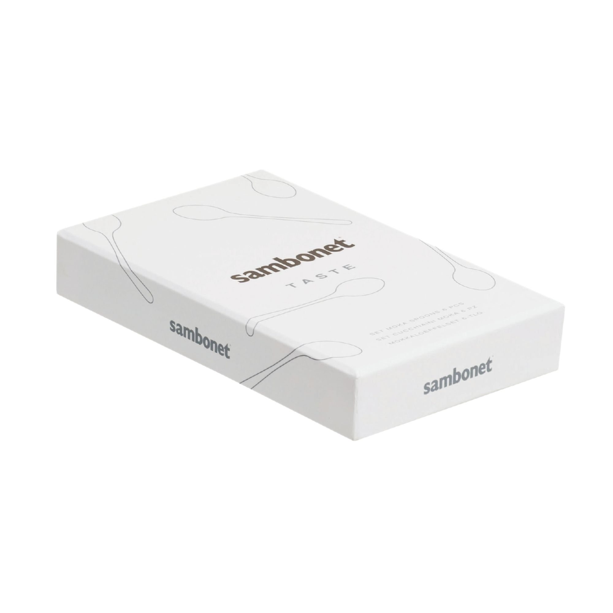 6-piece 18/10 stainless steel mocha spoon set, from Taste collection. Available in our beautiful colors, these mocha spoons features an essential and minimalist design, with a delicate drop shape. Perfect for both everyday use and for special occasions, these beautiful accessories will bring an exclusive character and a strong presence to the table. Made by Sambonet.