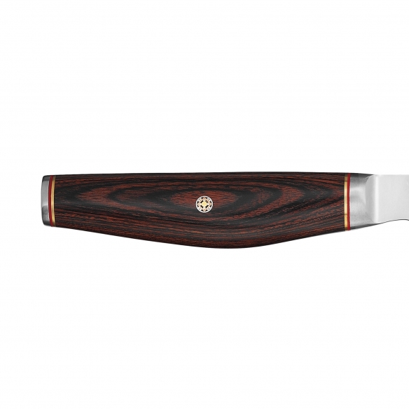 6000 MCT line is the result of a classic and timeless design that blends with precious materials to translate naturally and simply elegance. The Gyutoh, Santoku, Suijihiki and Shotoh knives make up the collection and feature an internal core in MC63 Micro Carbide powdered steel, wrapped in further layers, also in steel, completed by a peculiar hammering, called tsuchime. Each piece meets outstanding technical requirements and captivates for its double-sharp blades and for its Cocobolo pakka wood handle, perfectly balanced to facilitate and guarantee an outstanding cutting performance. Discover the beautiful Miyabi products here, on Newpop.it!