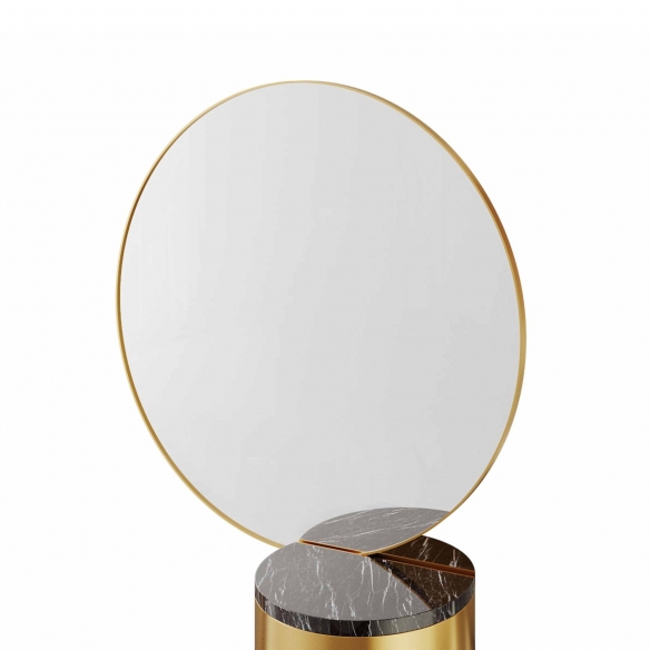 Strings vanity table 142.5 cm high. Vain, excessive and proud, this metal vanity table is the epitome of refinement and elegance, desired and appreciated for its quality and rarity. It features a large resin shelf, drawers for storage and a shimmering finish that will add a touch of glamor to any space. It is dressed in a deep and inky black, combined with a beautiful gold color. Strings is the perfect place to get ready for the day! Designed by Nika Zupanc