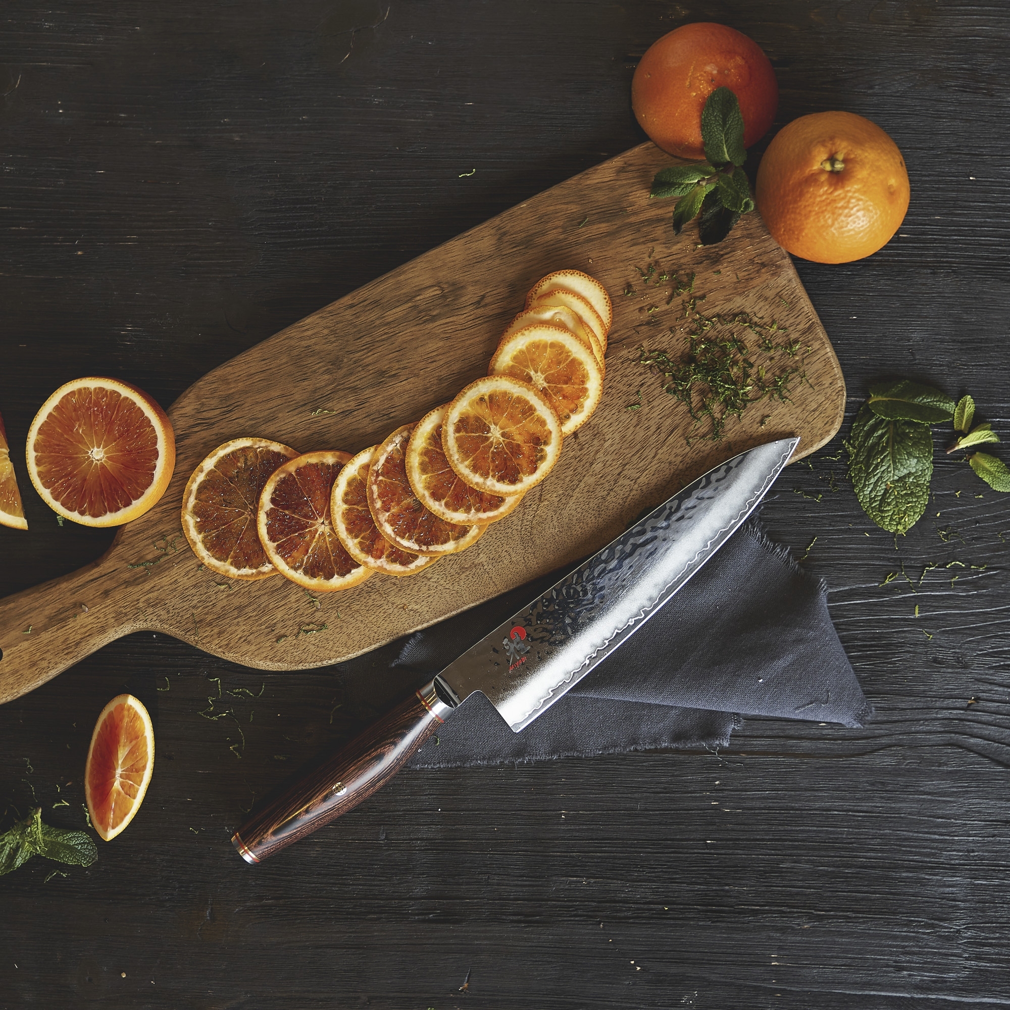6000 MCT line is the result of a classic and timeless design that blends with precious materials to translate naturally and simply elegance. The Gyutoh, Santoku, Suijihiki and Shotoh knives make up the collection and feature an internal core in MC63 Micro Carbide powdered steel, wrapped in further layers, also in steel, completed by a peculiar hammering, called tsuchime. Each piece meets outstanding technical requirements and captivates for its double-sharp blades and for its Cocobolo pakka wood handle, perfectly balanced to facilitate and guarantee an outstanding cutting performance. Discover the beautiful Miyabi products here, on Newpop.it!