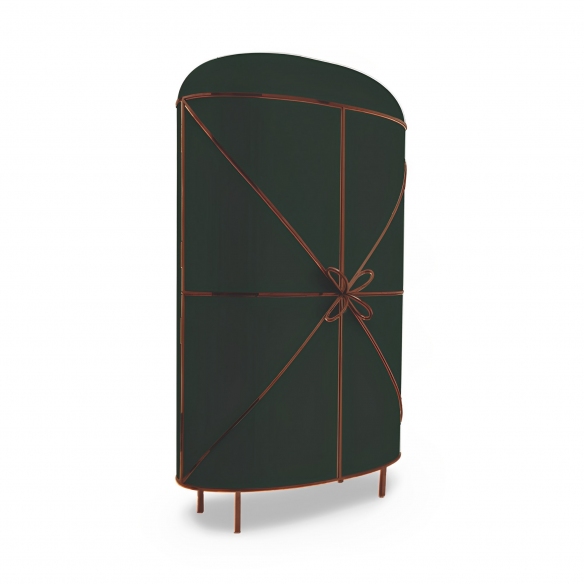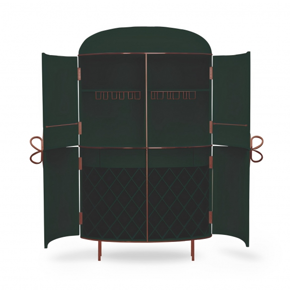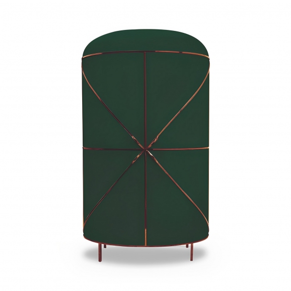MDF cabinet from 88 Secrets collection, 190 cm high. A captivating design combined with luxurious glamor, this furnishing accessory has been created to instill elegance, with gorgeous metallic finishes that complements its sophisticated and eye-cathing shapes, underlining its beauty. It has slim legs, which add a modern touch, and shelves to give you all the storage space you need. It's a perfect accent to any setting! Designed by Nika Zupanc for Scarlet Splendour
