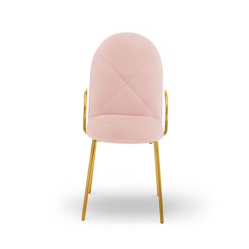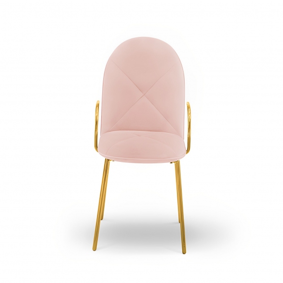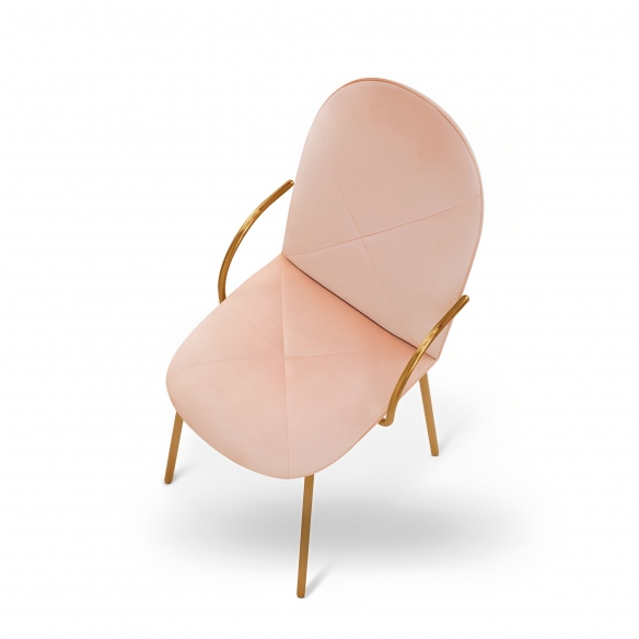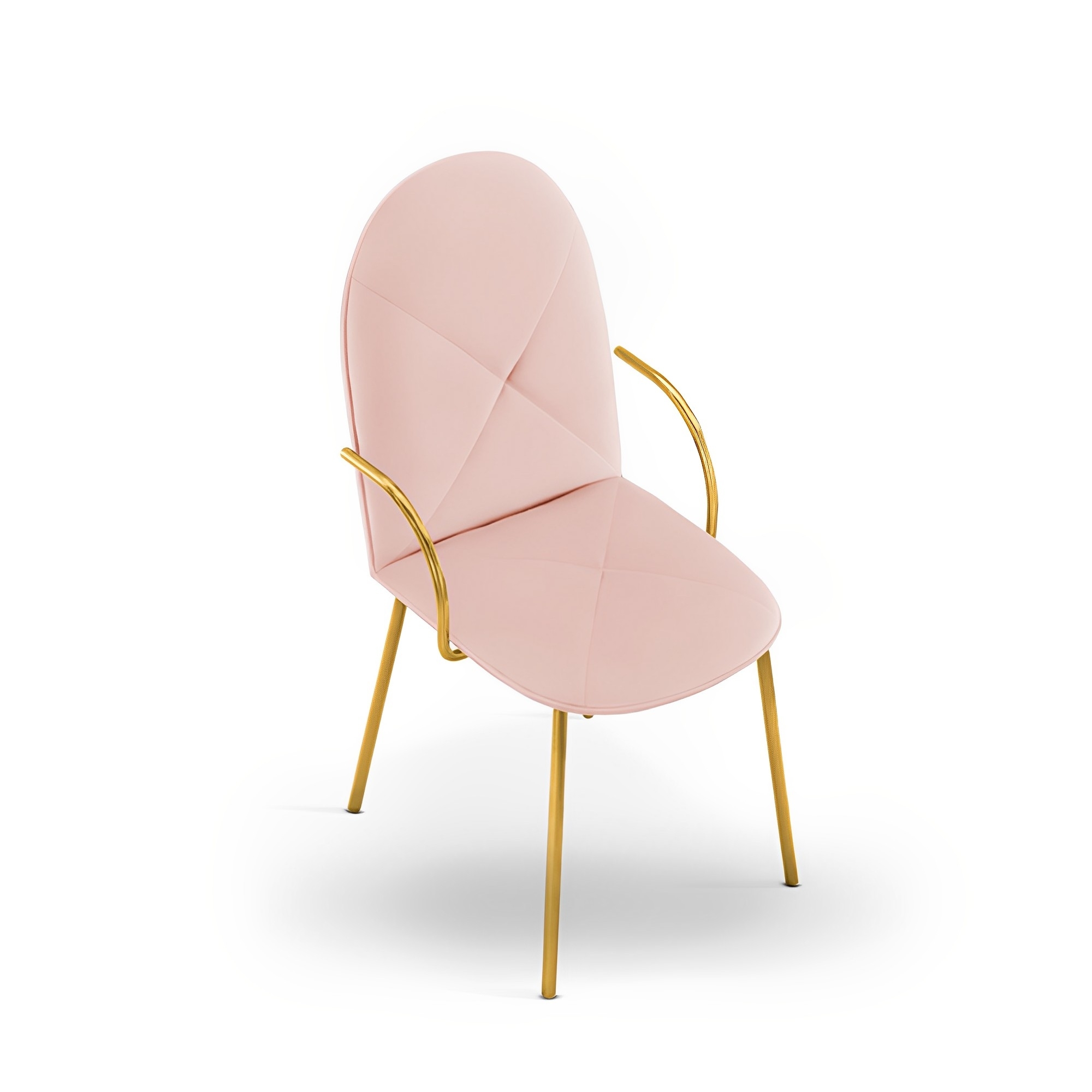 Orion chair from 88 Secrets collection, 92 cm high. Emblem of the contemporary, Orion is a comfortable and welcoming seat, which surprises for its chic and glamorous graphic effect, but also for its unique comfort. It features a luxurious fabric upholstery and an elegant metallic finish that adds a sophisticated touch, enhancing any space. Designed by Nika Zupanc for Scarlet Splendour