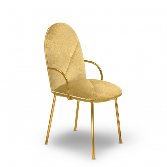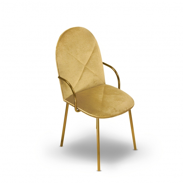 Orion chair from 88 Secrets collection, 92 cm high. Emblem of the contemporary, Orion is a comfortable and welcoming seat, which surprises for its chic and glamorous graphic effect, but also for its unique comfort. It features a luxurious fabric upholstery and an elegant metallic finish that adds a sophisticated touch, enhancing any space. Designed by Nika Zupanc for Scarlet Splendour