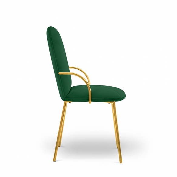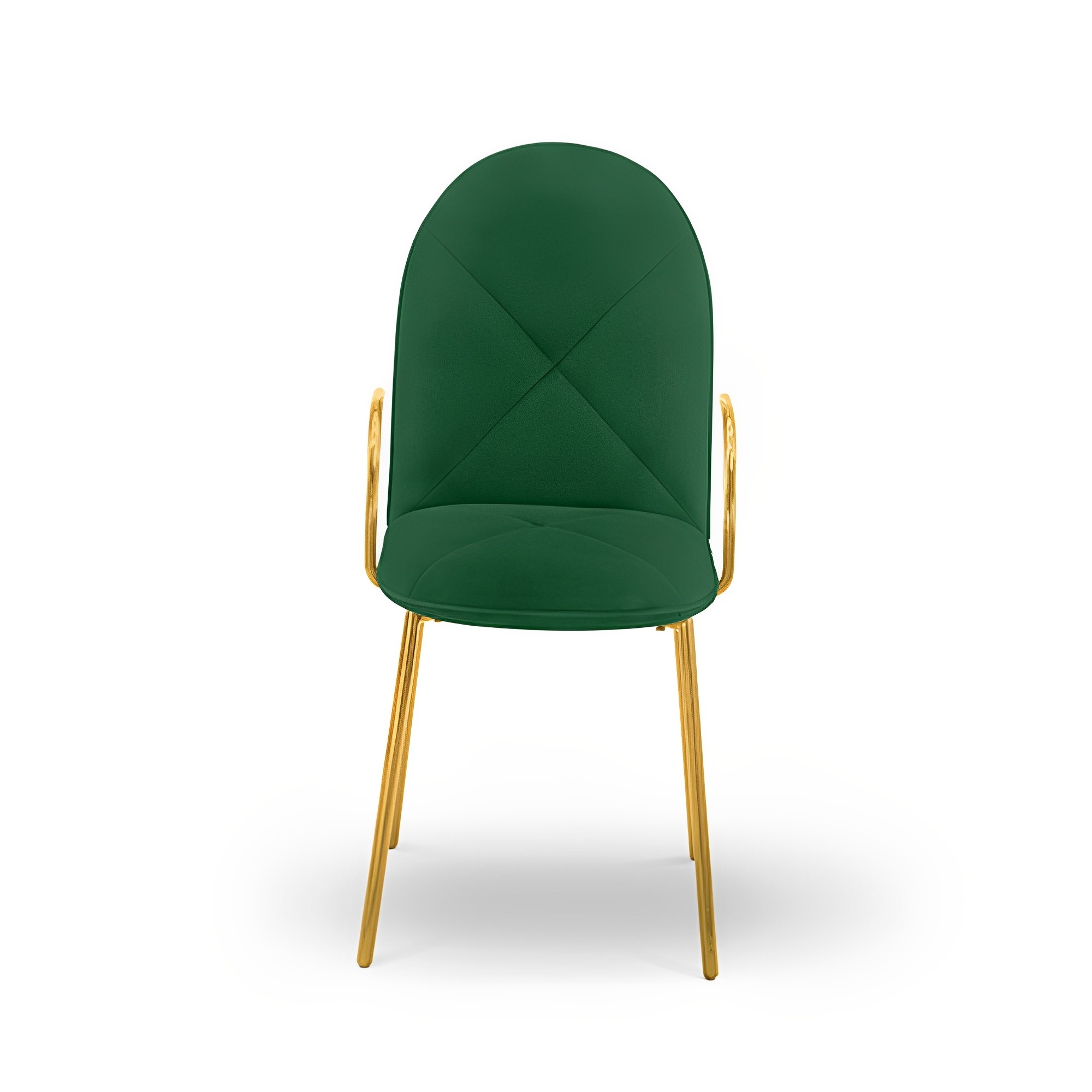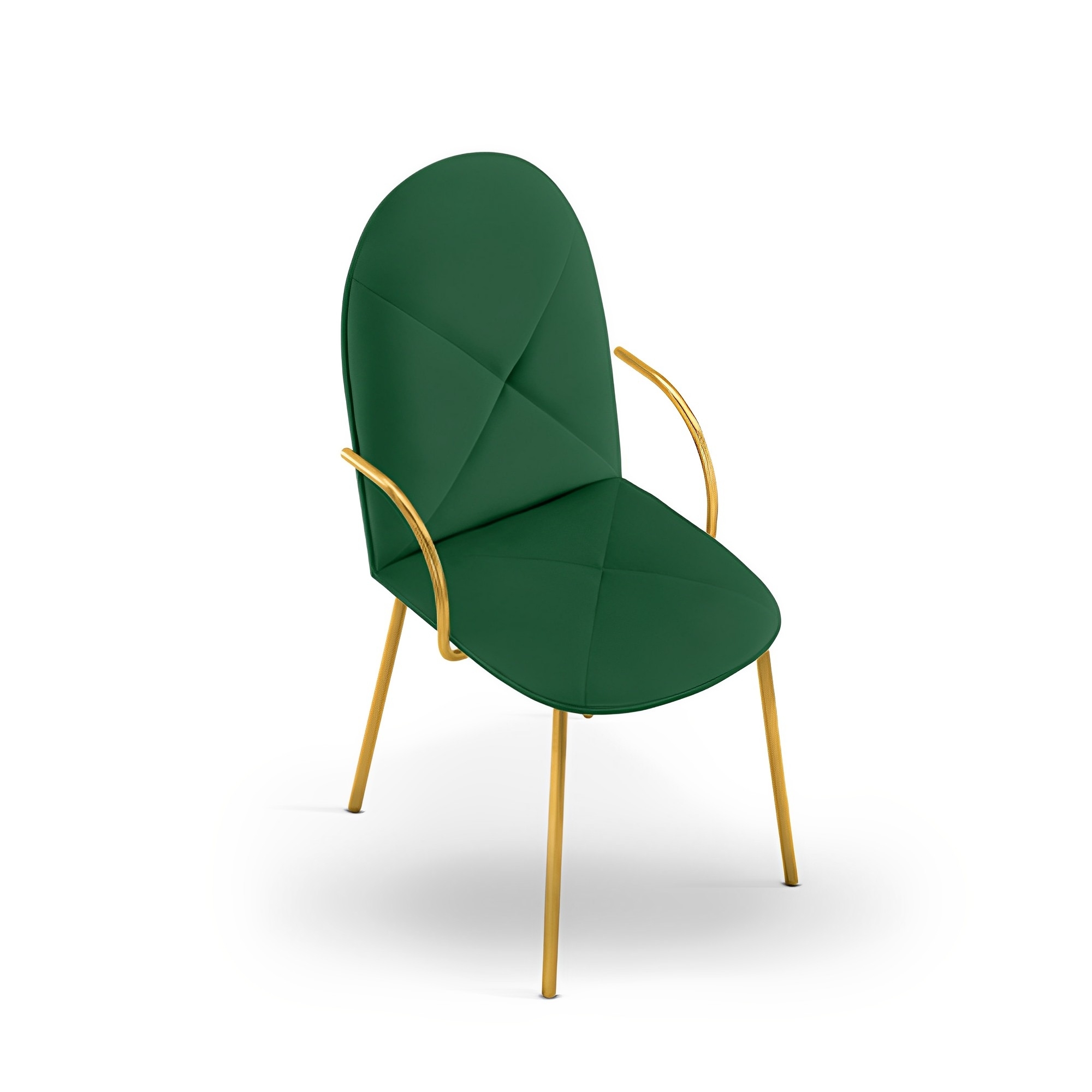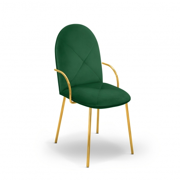 Orion chair from 88 Secrets collection, 92 cm high. Emblem of the contemporary, Orion is a comfortable and welcoming seat, which surprises for its chic and glamorous graphic effect, but also for its unique comfort. It features a luxurious fabric upholstery and an elegant metallic finish that adds a sophisticated touch, enhancing any space. Designed by Nika Zupanc for Scarlet Splendour