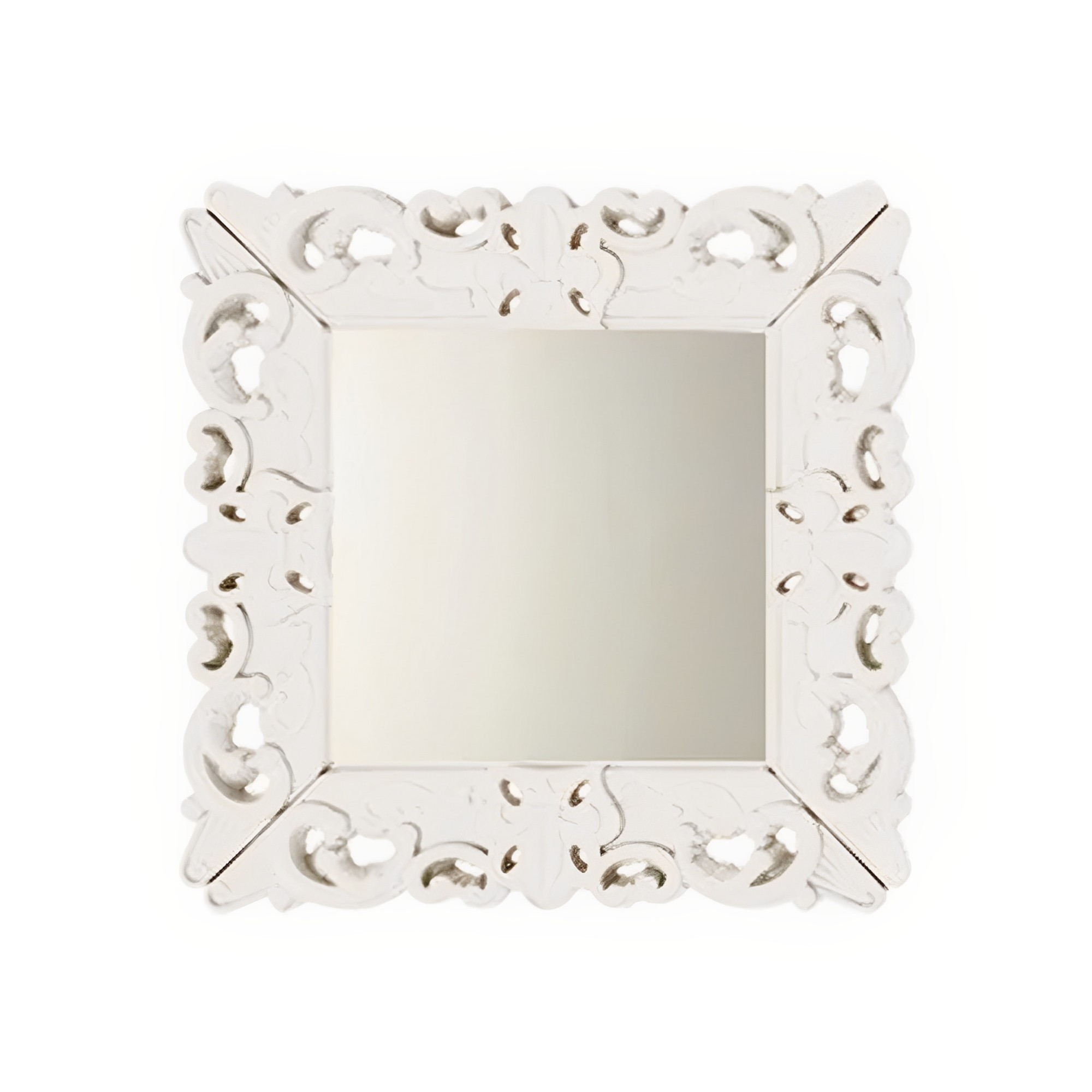 Mirror of Love, in the S version, made of polyethylene. Exuberant and whimsical, the Mirror of Love mirror will allow you to broaden the perspective of your spaces, making the rooms appear larger and more spacious. The ornamental abundance, reminiscent of Baroque aesthetics, combines with the contemporaneity of the materials, giving life to a unique piece of furniture: the Mirror of Love mirror is able to create a stylistic synergy with any environment in which lends itself to being inserted. Enhance the beauty of your space, choose Mirror of Love! Designed by Moro and Pigatti for Slide.