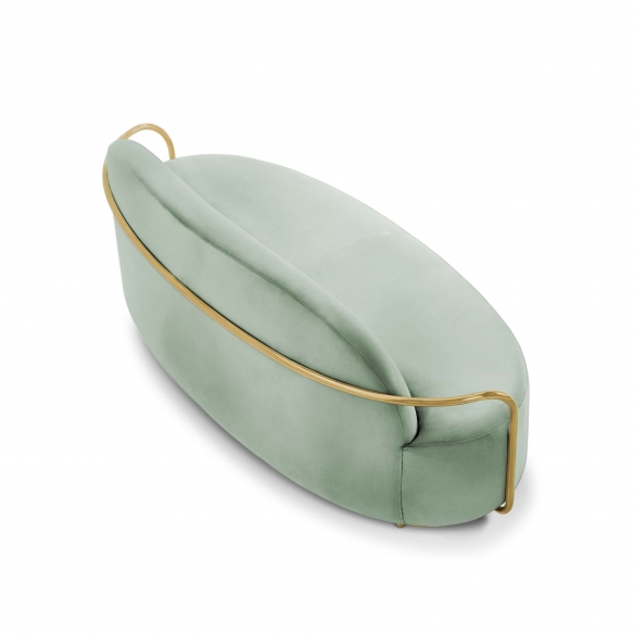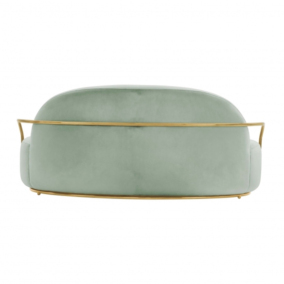 Orion sofa from 88 Secrets collection, 205 cm long. Emblem of the contemporary, Orion is a comfortable and welcoming seat, which surprises for its chic and glamorous graphic effect, but also for its unique comfort. It features a luxurious fabric upholstery and an elegant metallic finish that adds a sophisticated touch, enhancing any space. Designed by Nika Zupanc for Scarlet Splendour