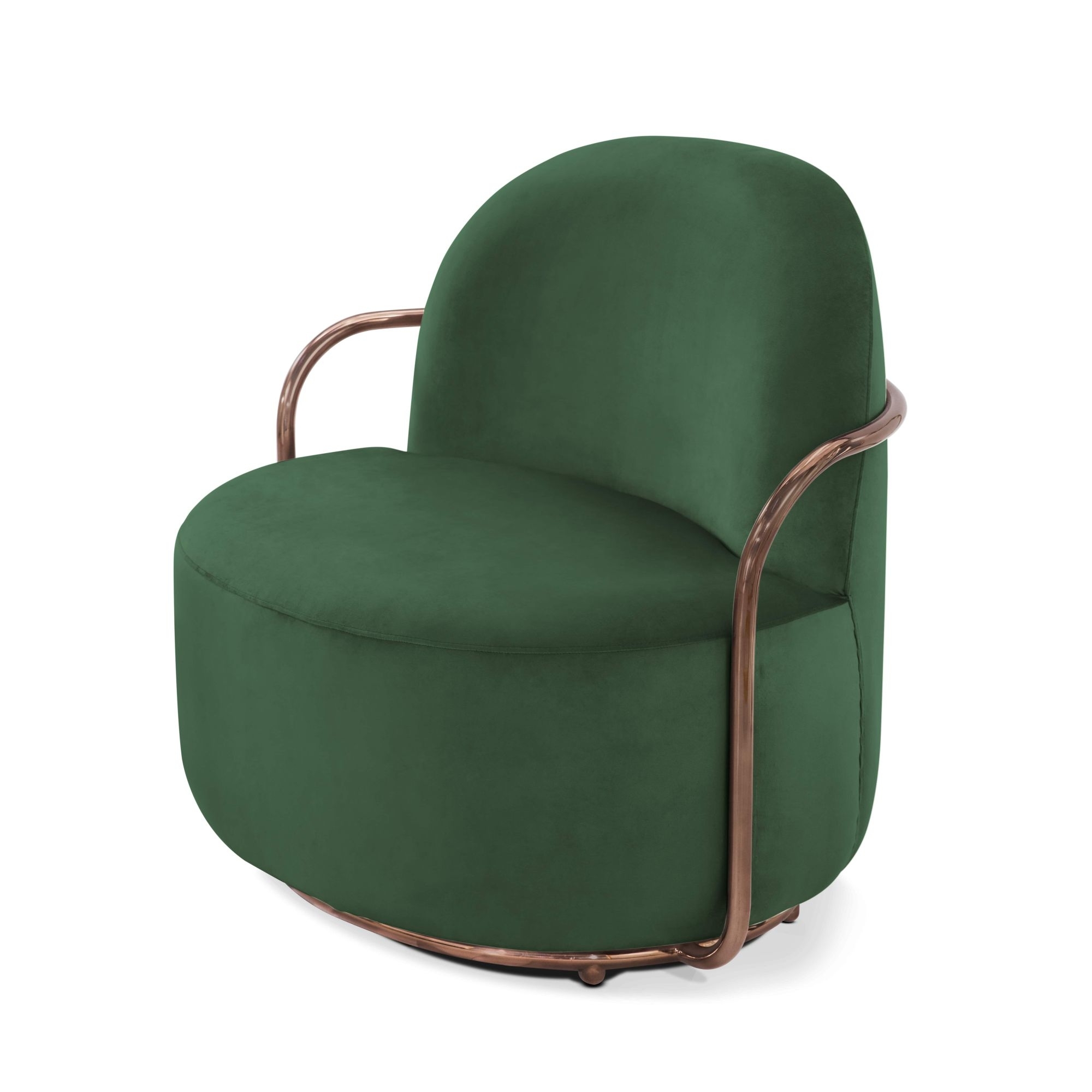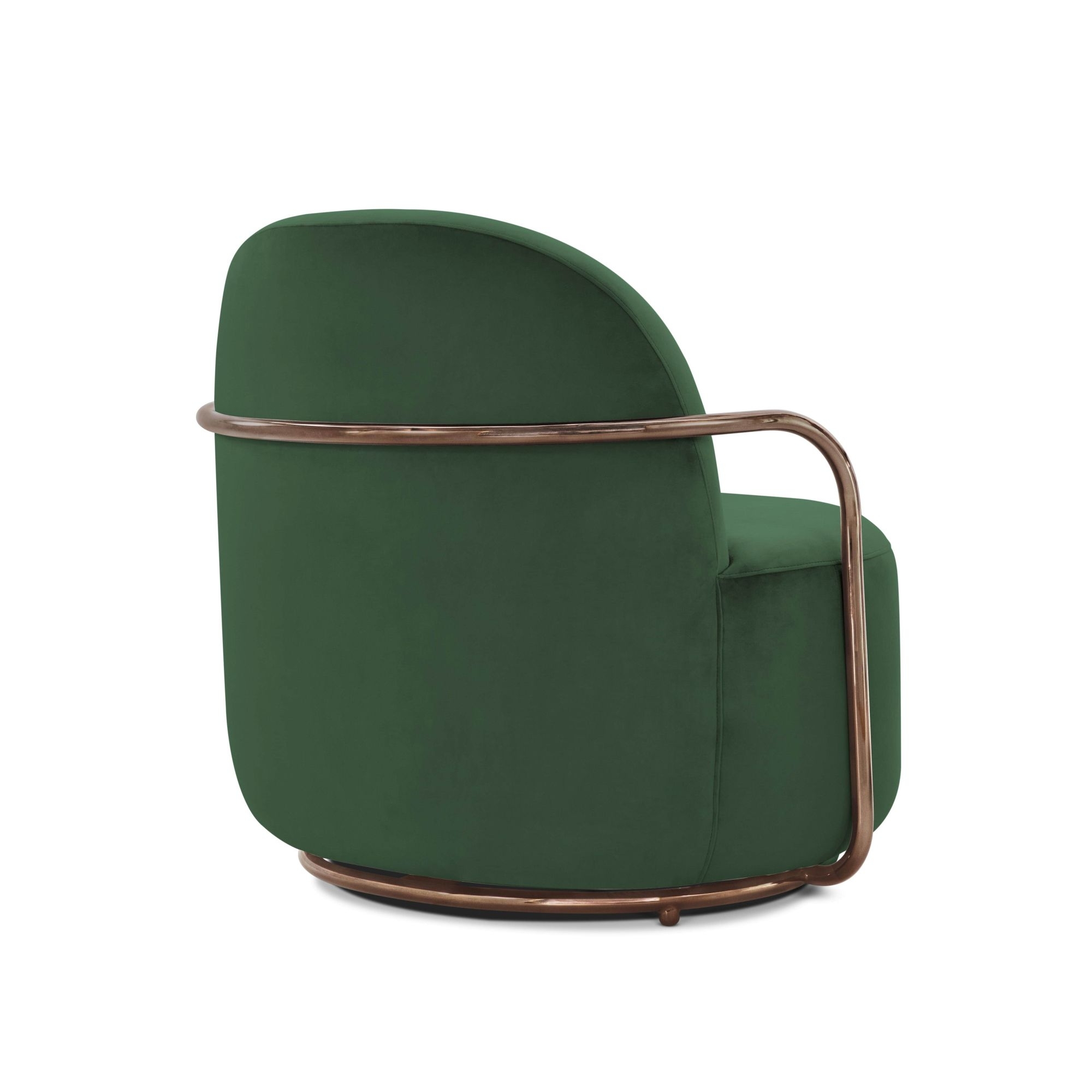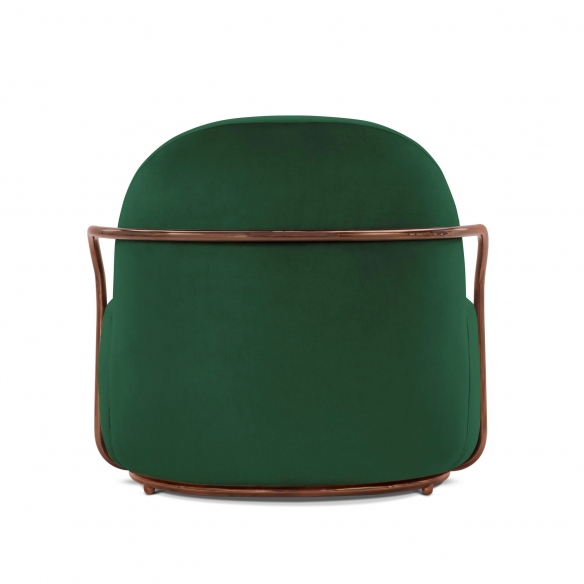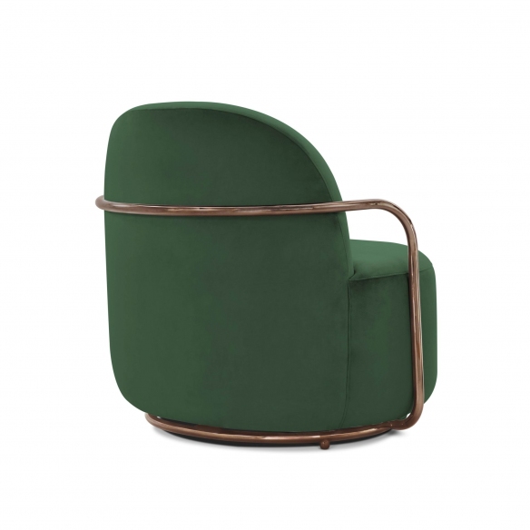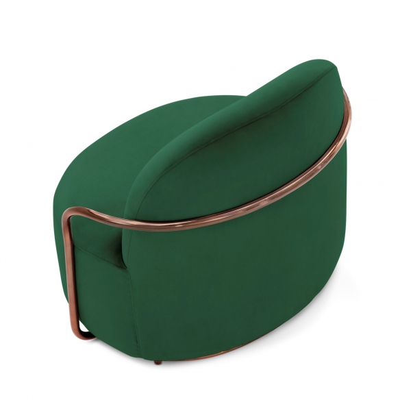 Orion lounge chair from 88 Secrets collection, 94 cm long. Emblem of the contemporary, Orion is a comfortable and welcoming seat, which surprises for its chic and glamorous graphic effect, but also for its unique comfort. It features a luxurious fabric upholstery and an elegant metallic finish that adds a sophisticated touch, enhancing any space. Designed by Nika Zupanc for Scarlet Splendour