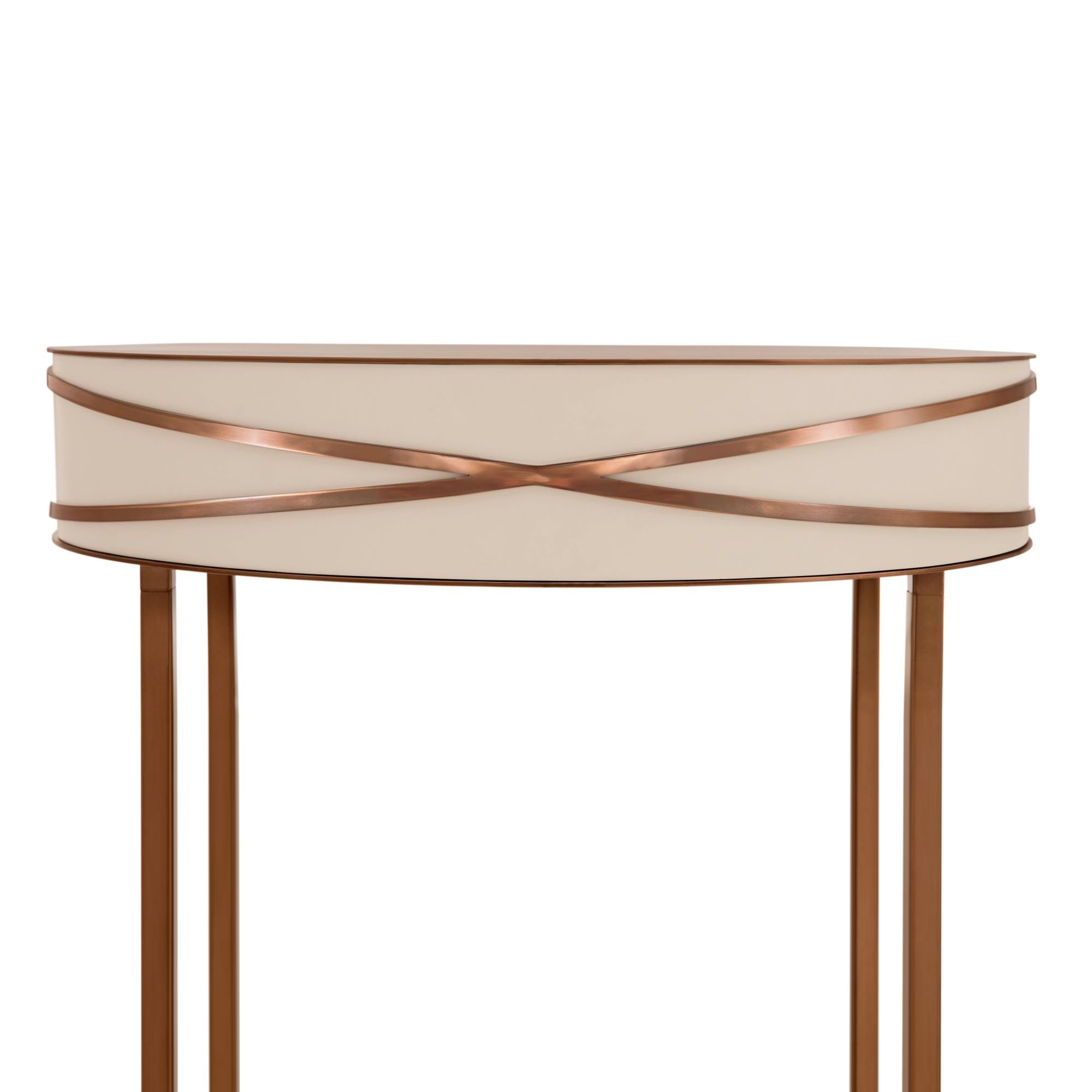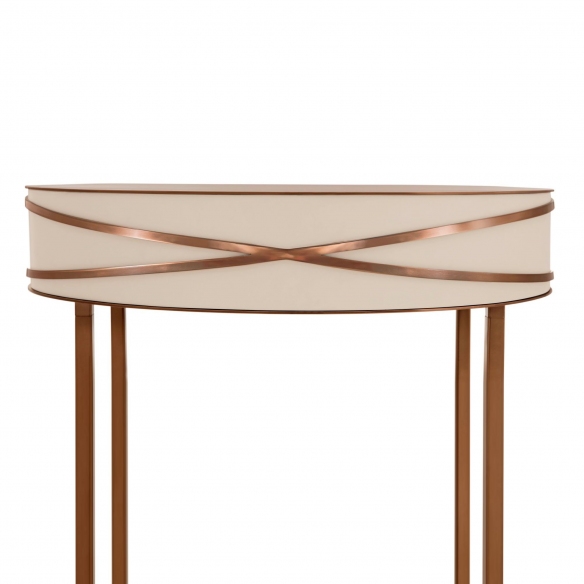 MDF console from 88 Secrets collection, 75 cm high. A captivating design combined with luxurious glamor, this furnishing accessory has been created to instill elegance, with gorgeous metallic finishes that complements its sophisticated and eye-cathing shapes, underlining its beauty. It has slim legs, which add a modern touch, and a drawer to give you all the storage space you need. It's a perfect accent to any setting! Designed by Nika Zupanc for Scarlet Splendour