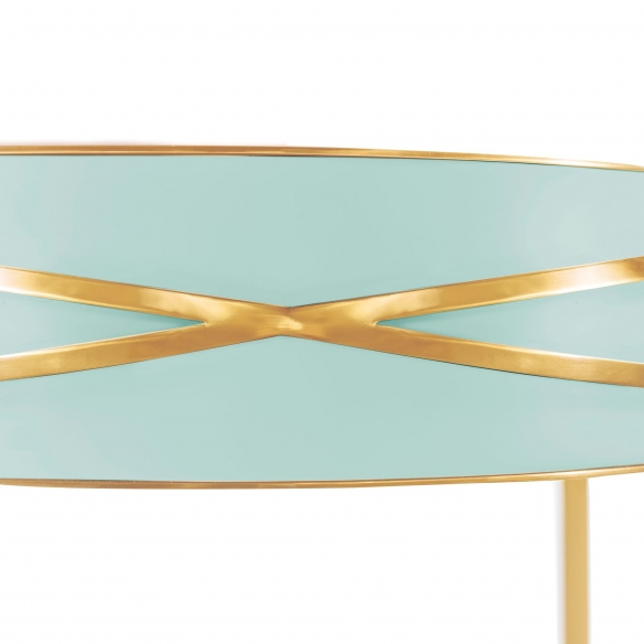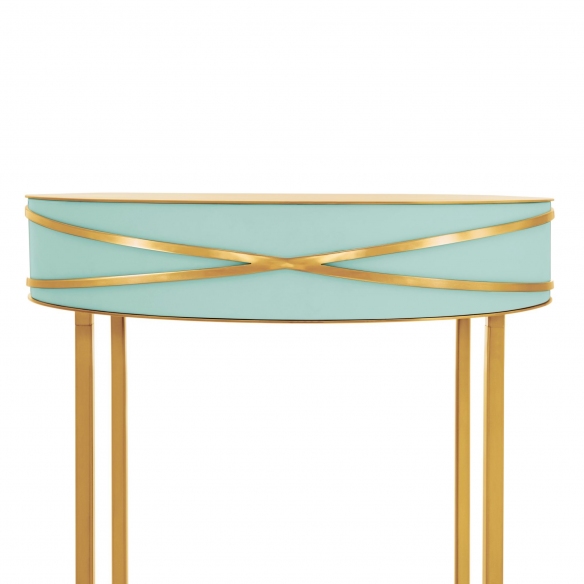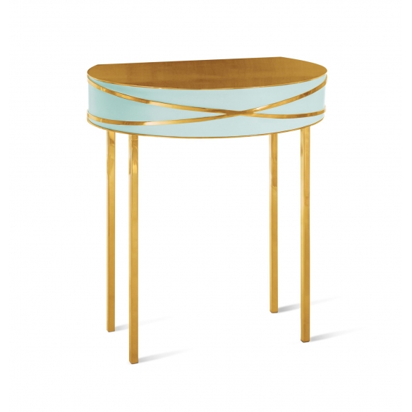 MDF console from 88 Secrets collection, 75 cm high. A captivating design combined with luxurious glamor, this furnishing accessory has been created to instill elegance, with gorgeous metallic finishes that complements its sophisticated and eye-cathing shapes, underlining its beauty. It has slim legs, which add a modern touch, and a drawer to give you all the storage space you need. It's a perfect accent to any setting! Designed by Nika Zupanc for Scarlet Splendour
