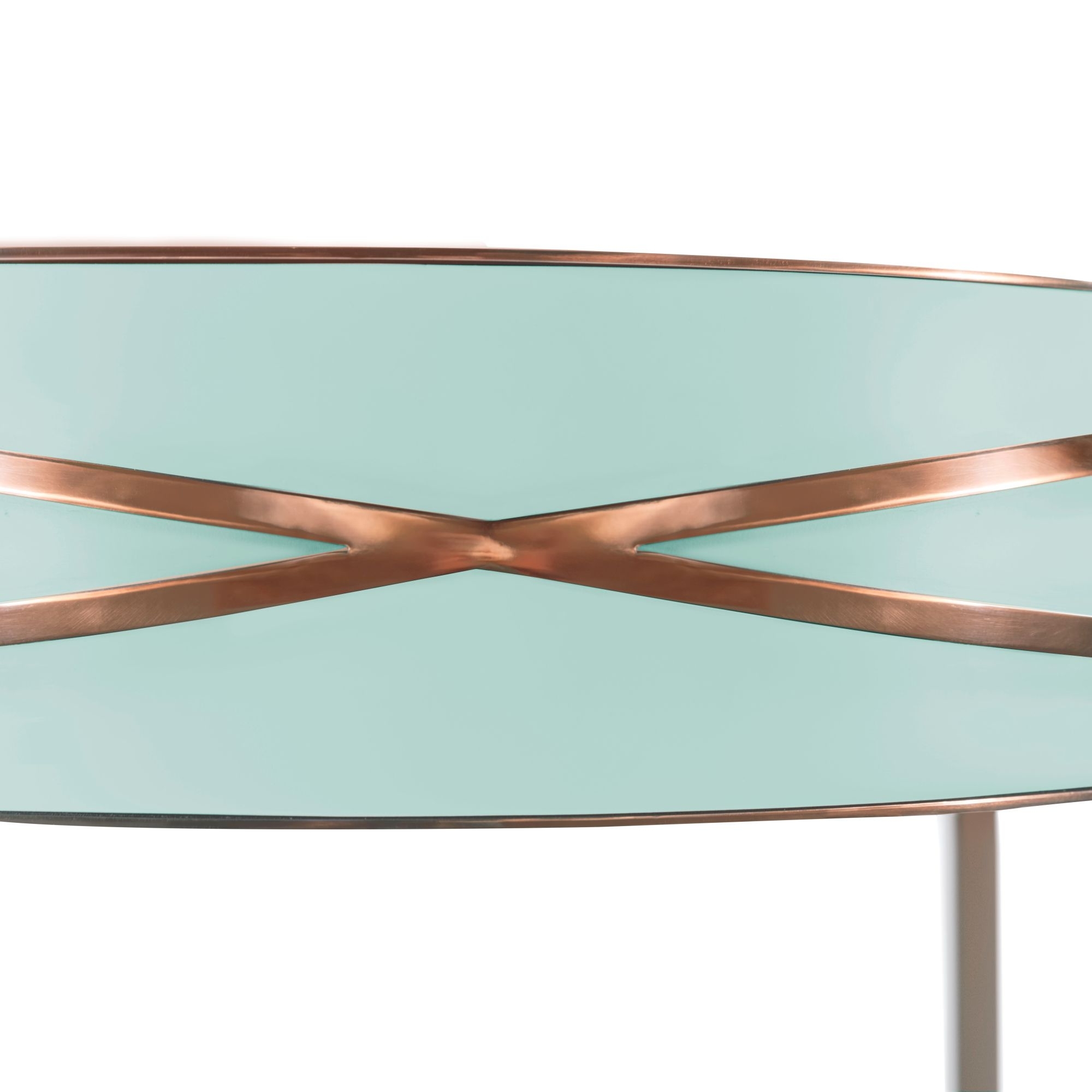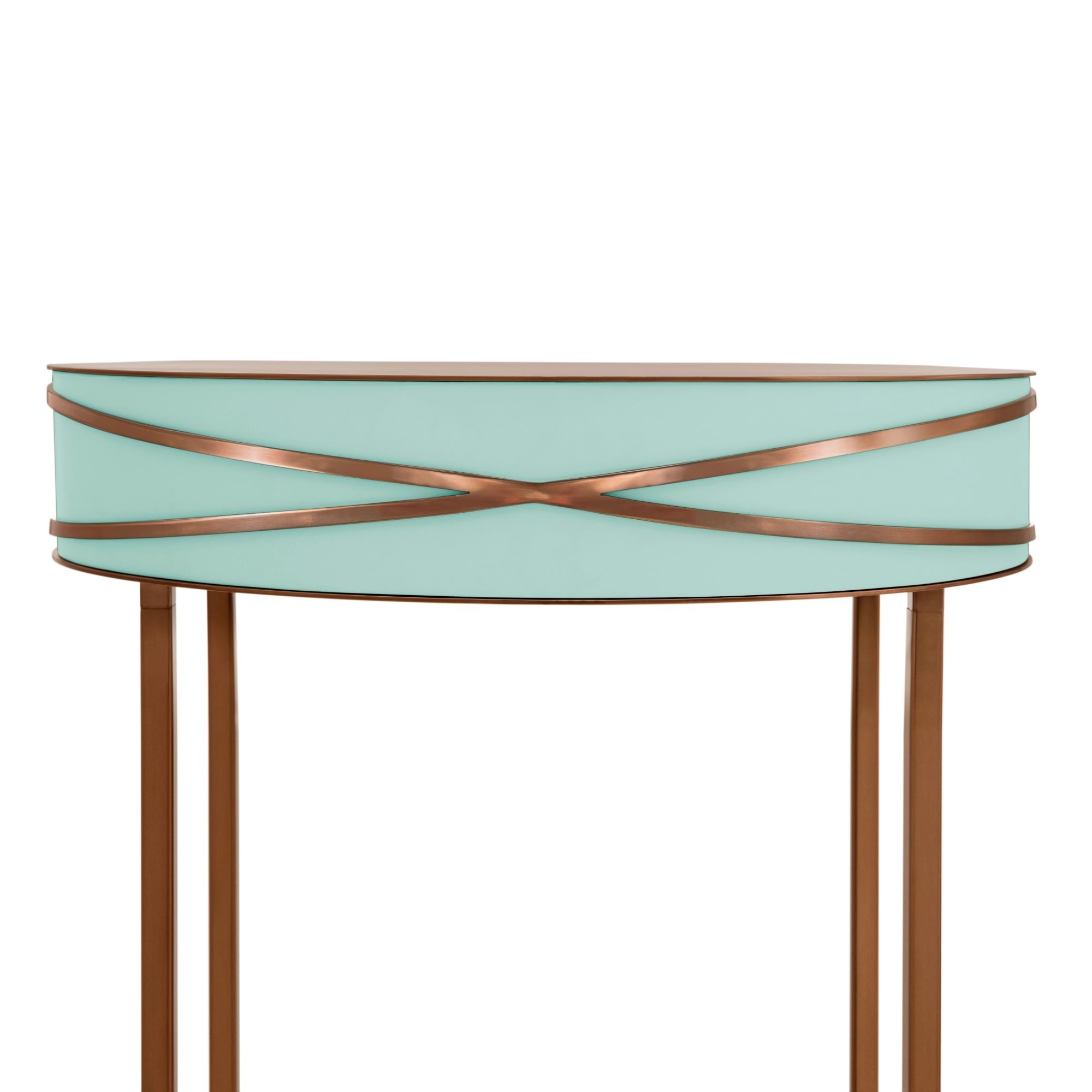 MDF console from 88 Secrets collection, 75 cm high. A captivating design combined with luxurious glamor, this furnishing accessory has been created to instill elegance, with gorgeous metallic finishes that complements its sophisticated and eye-cathing shapes, underlining its beauty. It has slim legs, which add a modern touch, and a drawer to give you all the storage space you need. It's a perfect accent to any setting! Designed by Nika Zupanc for Scarlet Splendour