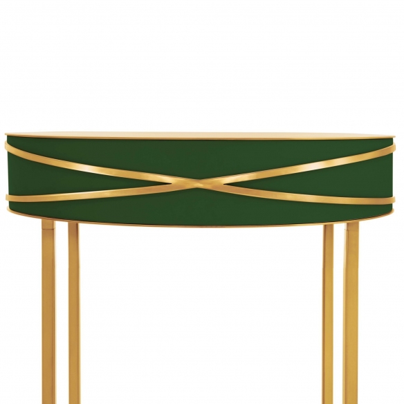MDF console from 88 Secrets collection, 75 cm high. A captivating design combined with luxurious glamor, this furnishing accessory has been created to instill elegance, with gorgeous metallic finishes that complements its sophisticated and eye-cathing shapes, underlining its beauty. It has slim legs, which add a modern touch, and a drawer to give you all the storage space you need. It's a perfect accent to any setting! Designed by Nika Zupanc for Scarlet Splendour