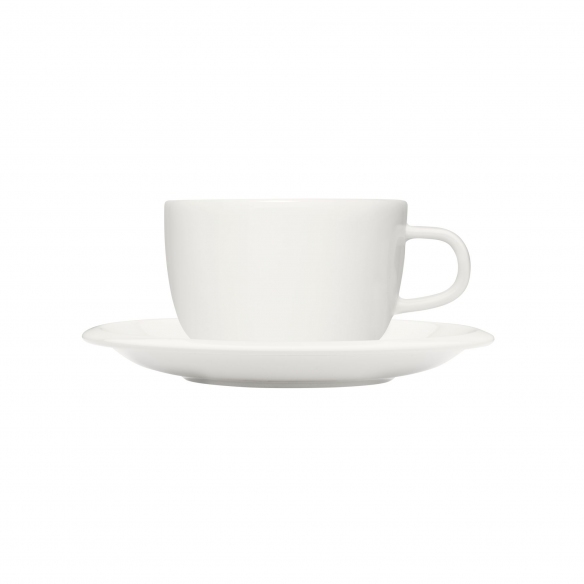 White ceramic cup 27 cl, including saucer, from Raami collection. It's perfect for daily use, while its generous capacity allows you to enjoy your morning coffee or tea at home. Its beautiful glossy color palette make it a timeless classic, matching perfectly with any mise en place. Designed by Jasper Morrison for Iittala.