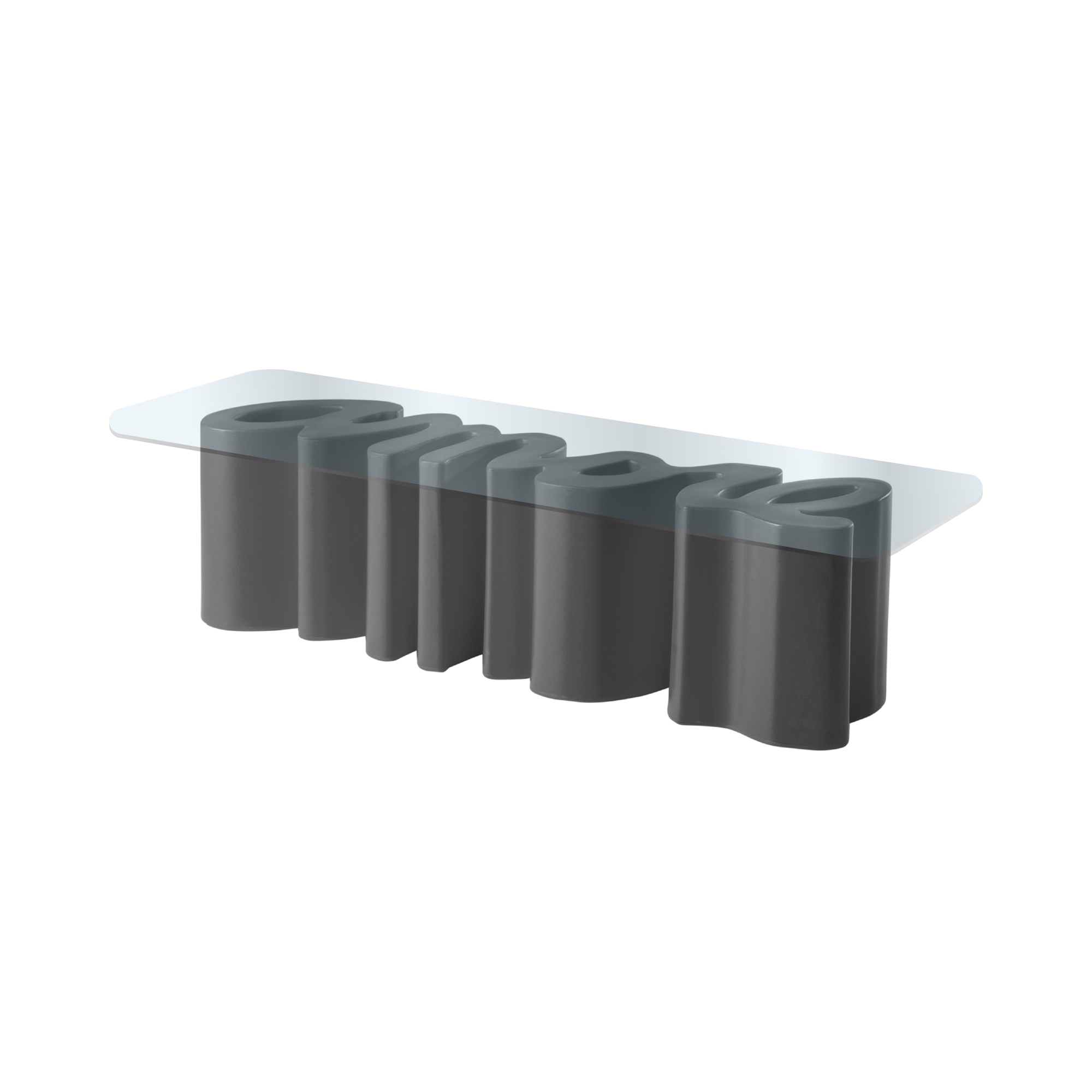 Amore polyethylene coffee table with tempered glass top. Amore is an extravagant and eccentric complement that stands out for its full and exuberant shades, the unpredictable design and the versatility of its materials, fully expressing the creativity of its designer. Infuse a touch of playful light-heartedness into your rooms, choose the whimsy of pop style. Designed by Giò Colonna Romano for Slide.