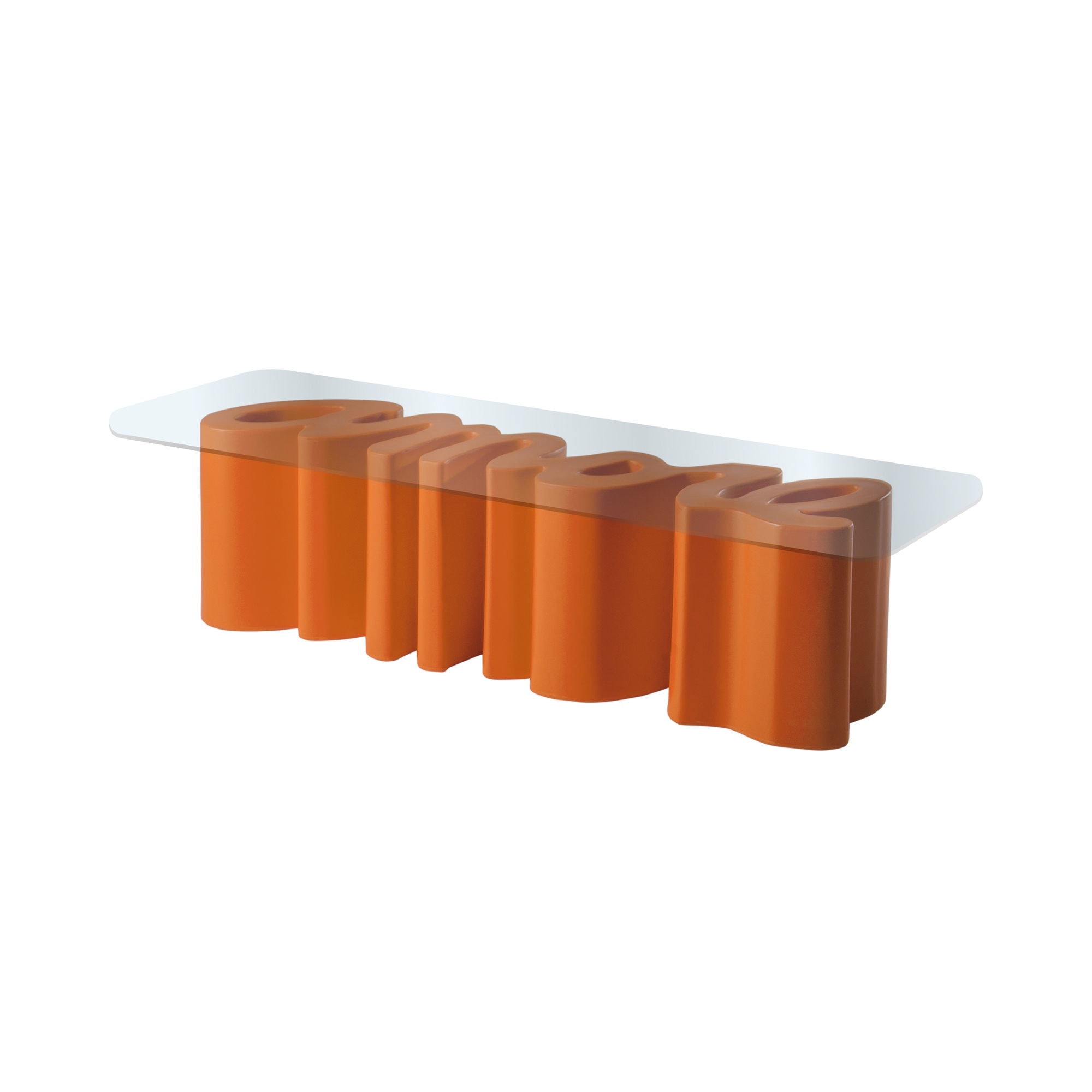 Amore polyethylene coffee table with tempered glass top. Amore is an extravagant and eccentric complement that stands out for its full and exuberant shades, the unpredictable design and the versatility of its materials, fully expressing the creativity of its designer. Infuse a touch of playful light-heartedness into your rooms, choose the whimsy of pop style. Designed by Giò Colonna Romano for Slide.