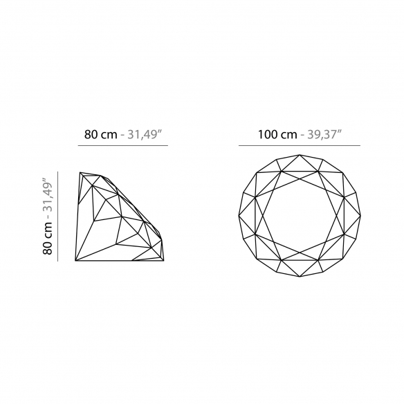 Bijoux polyethylene floor lamp, 100 cm of diameter. An explosion of light and attitude, Bijoux is a floor lamp designed for lovers of extravagance, for those who want to add a touch of glamor to any room. Its many facets along the surface create a surprising and irresistible luminous effect! Designed by Büro Für Form for Slide