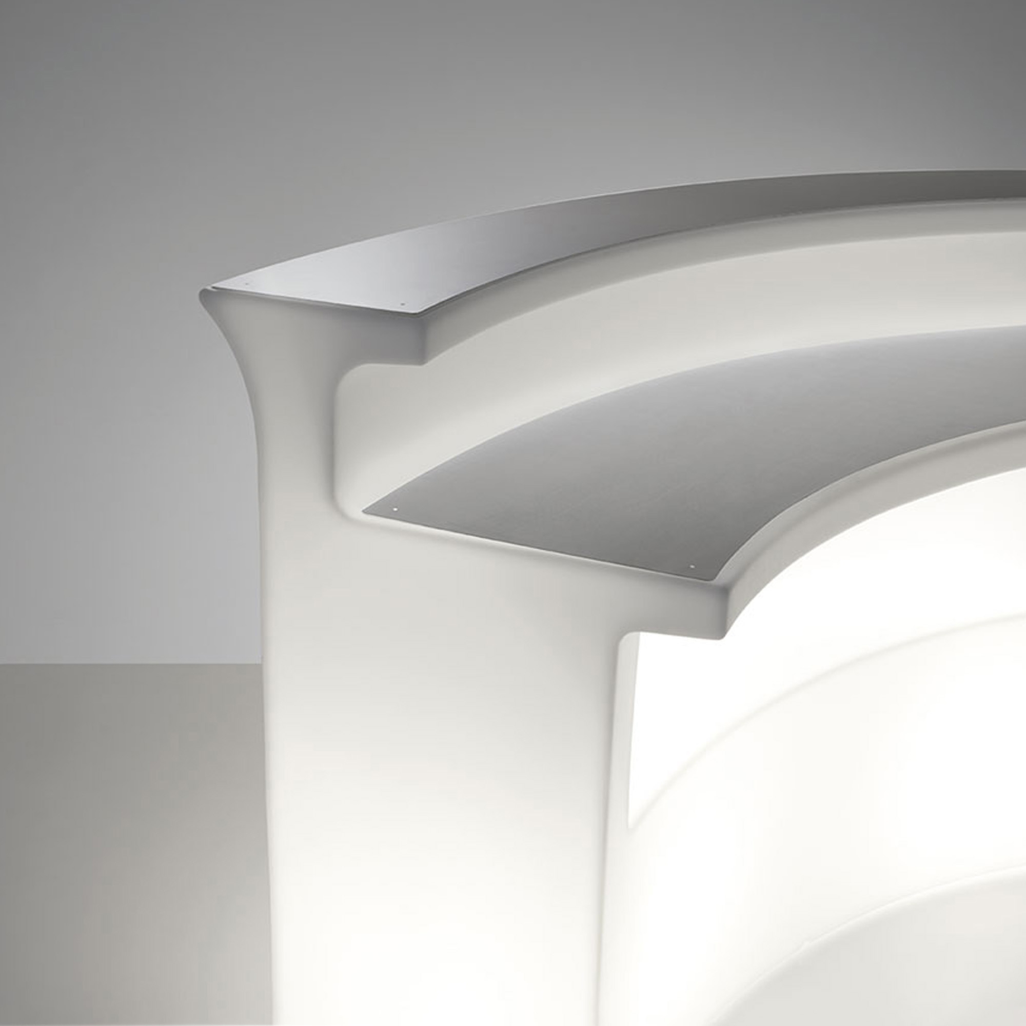 Polyethylene counter from Break Bar collection, 110 cm high. A sophisticated but minimal design, this piece of furniture can be used as an independent installation or combined with other units to form a larger and more enchanting system ensuring versatility in any context for furnishings capable of seeing the extraordinary in the ordinary. Designed by Slide Design Studio
