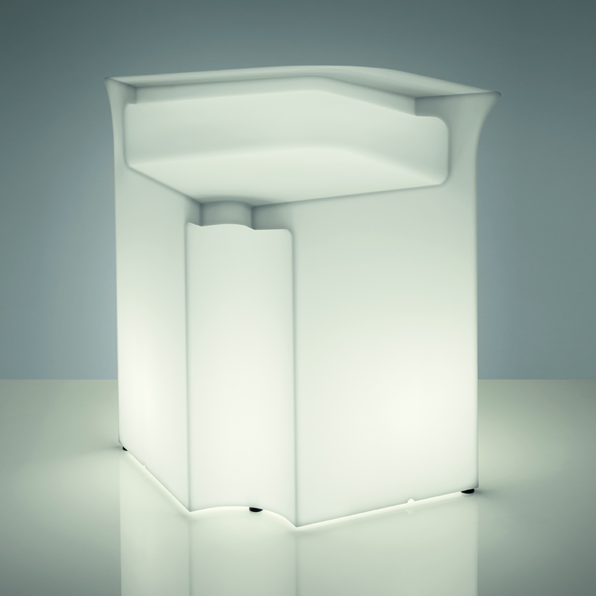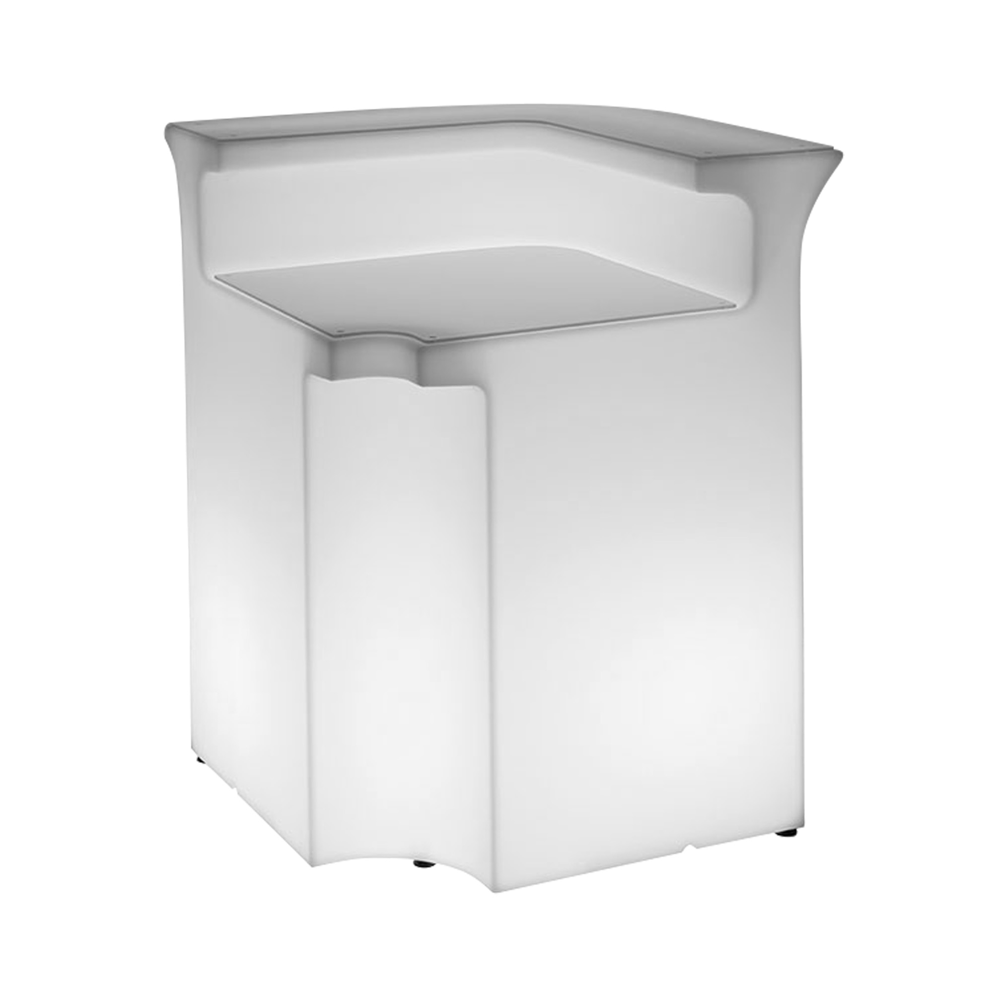 Polyethylene corner counter from Break Bar collection, 110 cm high. A sophisticated but minimal design, this piece of furniture can be used as an independent installation or combined with other units to form a larger and more enchanting system ensuring versatility in any context for furnishings capable of seeing the extraordinary in the ordinary. Designed by Slide Design Studio