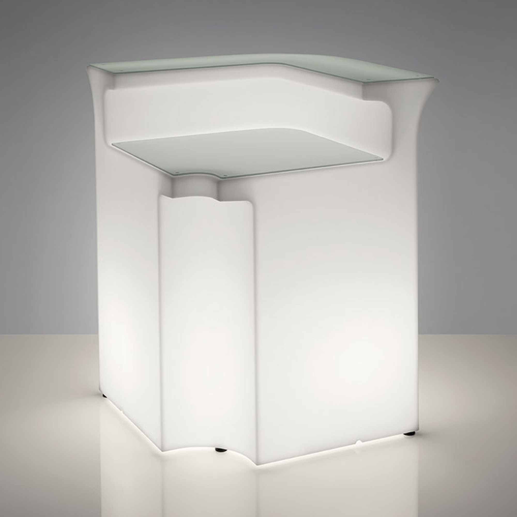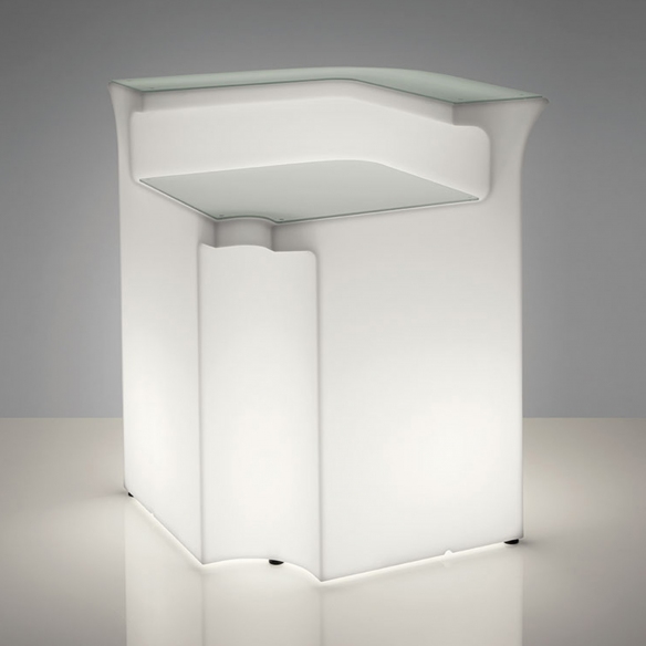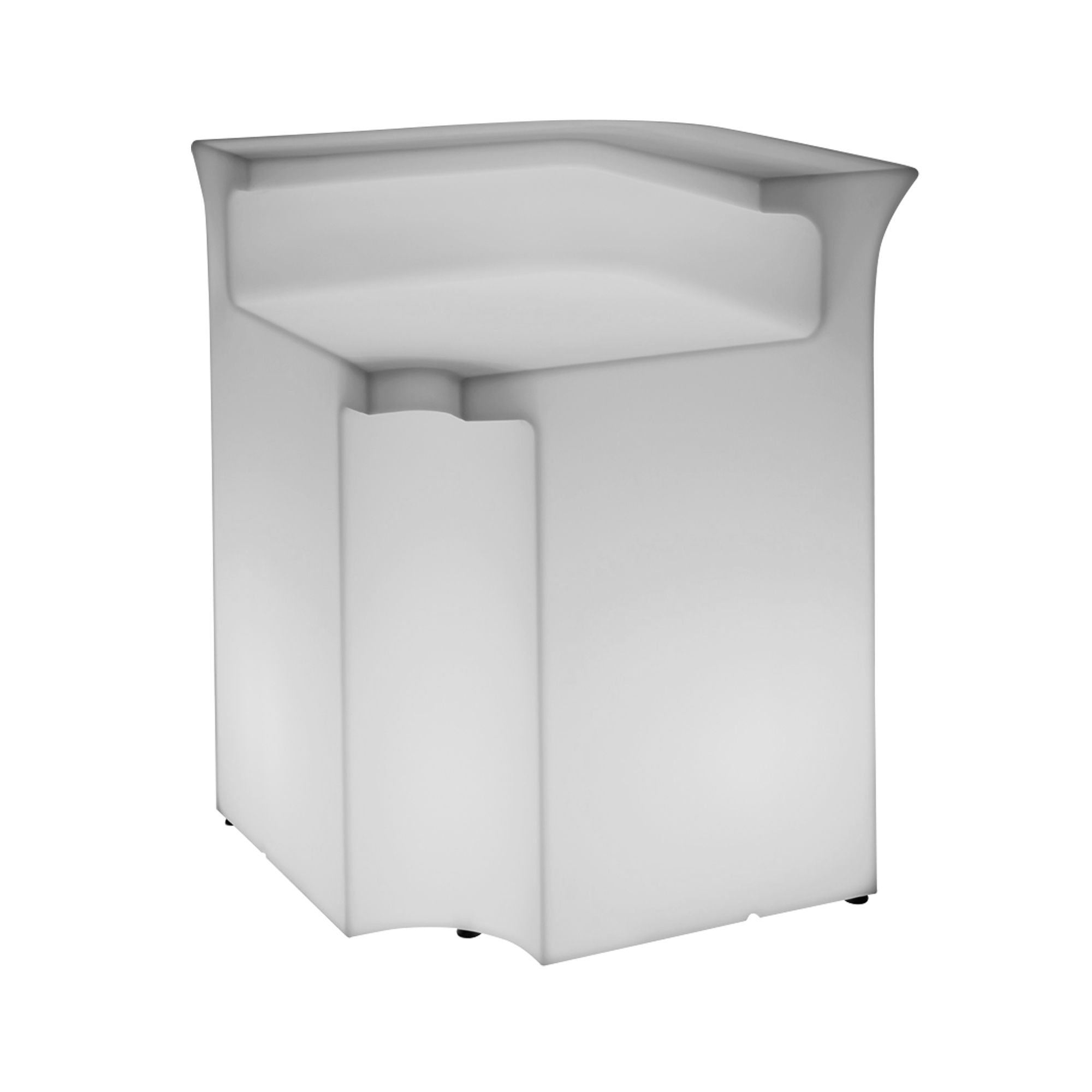 Polyethylene corner counter from Break Bar collection, 110 cm high. A sophisticated but minimal design, this piece of furniture can be used as an independent installation or combined with other units to form a larger and more enchanting system ensuring versatility in any context for furnishings capable of seeing the extraordinary in the ordinary. Designed by Slide Design Studio