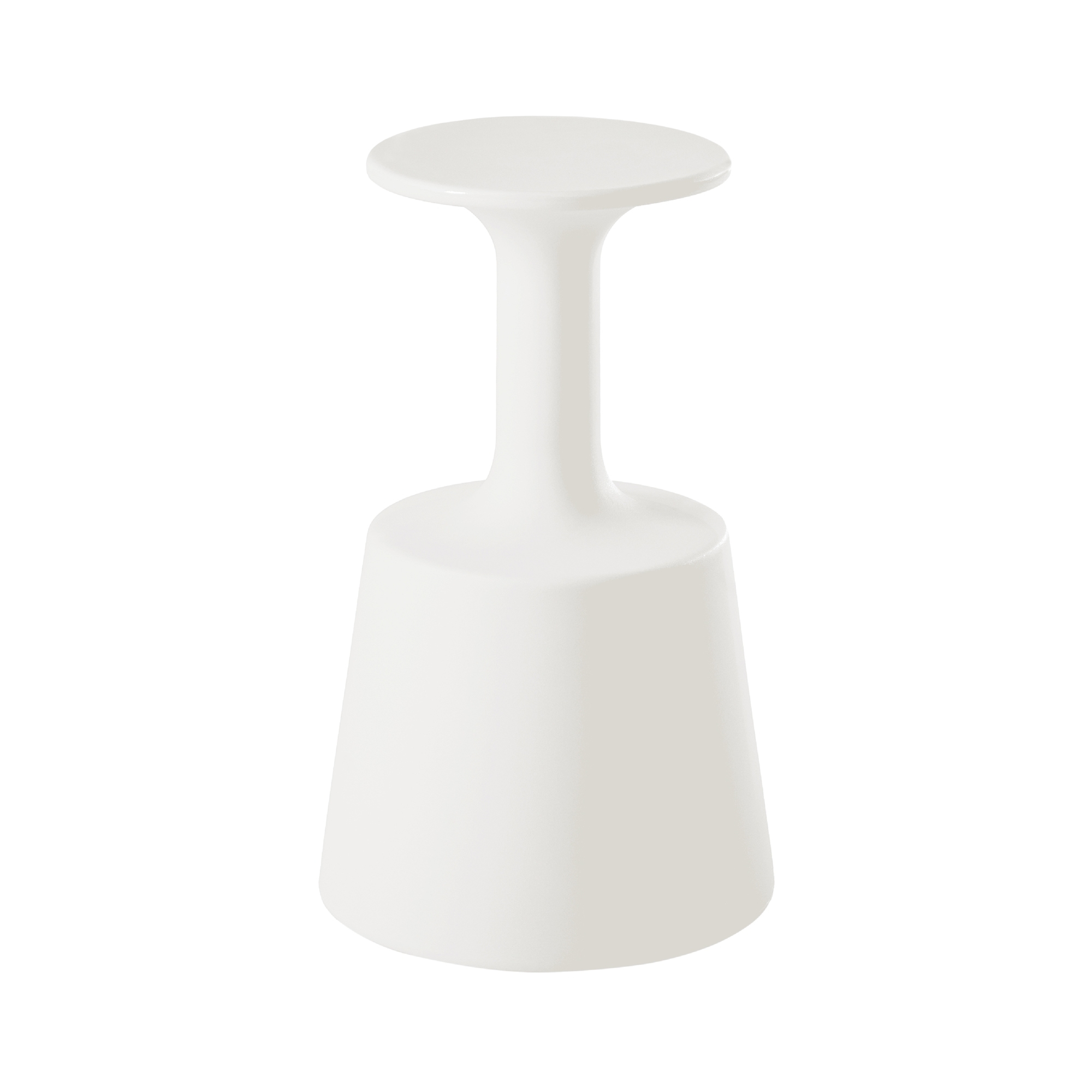 Polyethylene Drink stool, 45 cm diameter. Playful and unique, this stool is an accessory that does not go unnoticed. Stunning on its own, but perfect as a combination of several elements to create surprising relaxation areas. You can flip it over and use it as a bottle holder for both indoor and outdoor environments. Designed by Jorge Najera for Slide Design